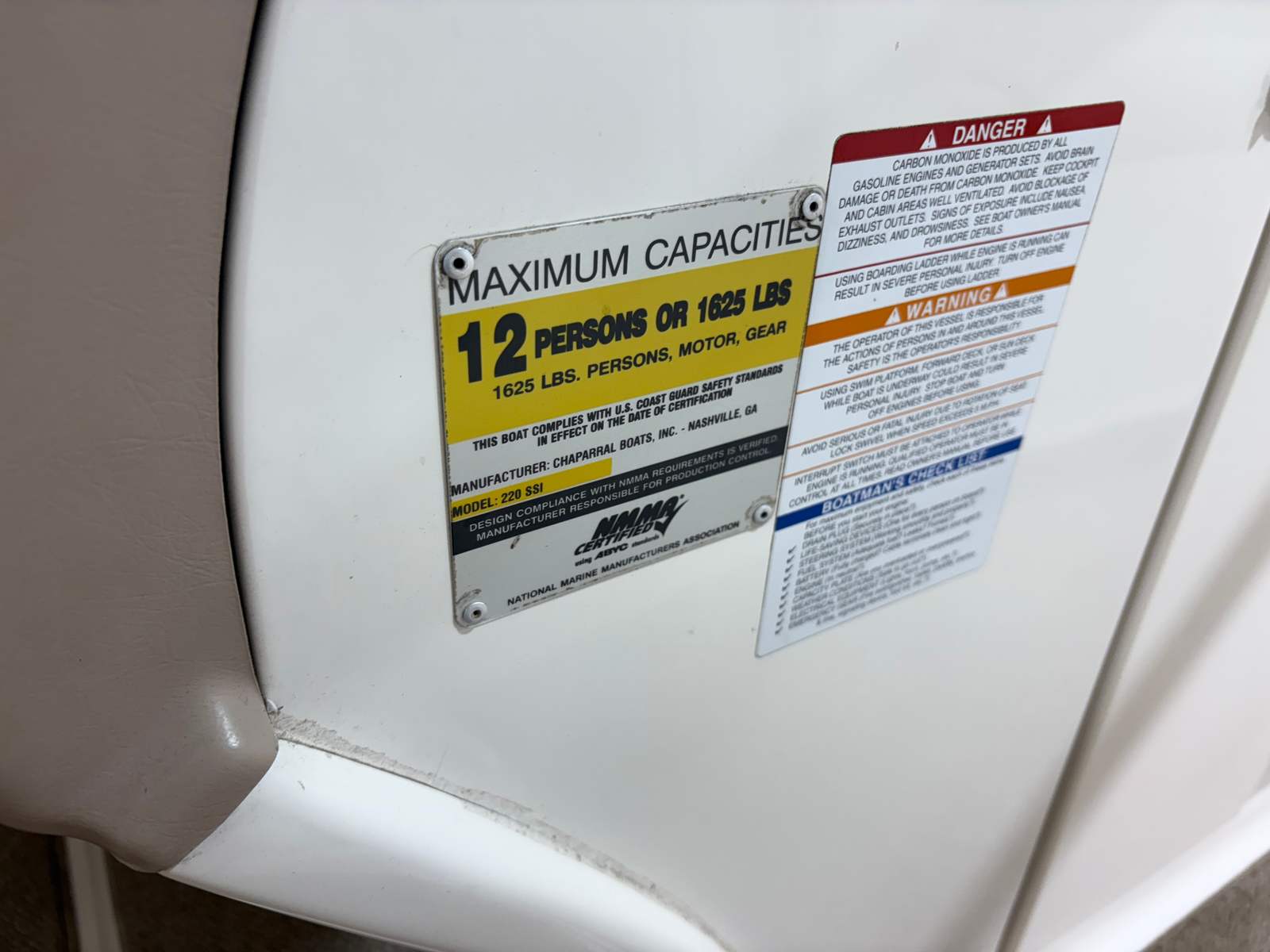 Powering this Bowrider is a single engine boasting an impressive 270 horsepower, ensuring exhilarating acceleration and smooth cruising across lakes, rivers, or coastal waters. With 797 engine hours, this used Chaparral 220 SSI has proven its reliability while still offering plenty of life for future journeys. The robust engine delivers responsive handling, making it easy to navigate tight turns, glide over waves, and enjoy watersports with confidence. Whether you’re towing a wakeboarder or simply cruising with friends, the performance of this Chaparral boat for sale is sure to impress.