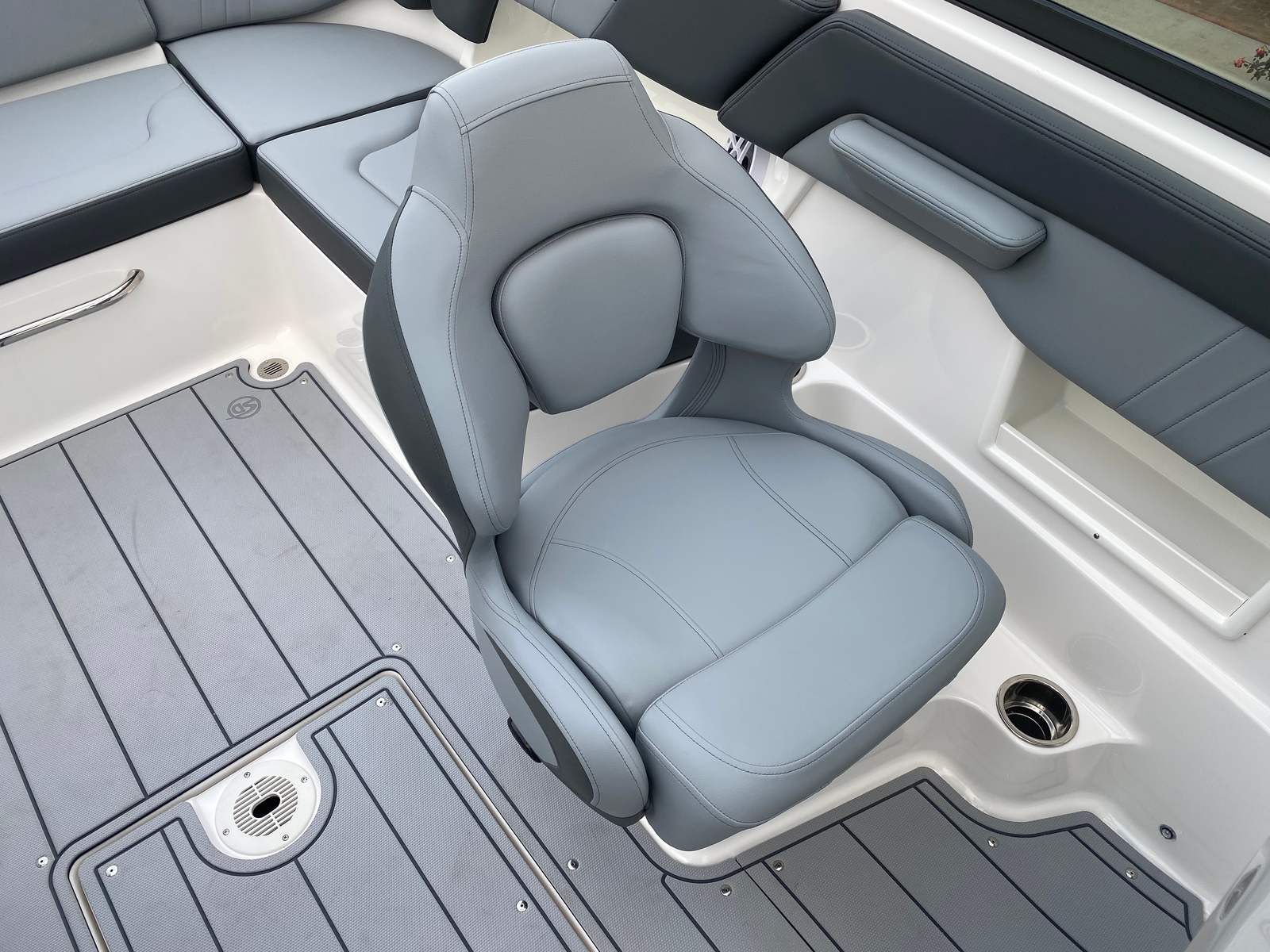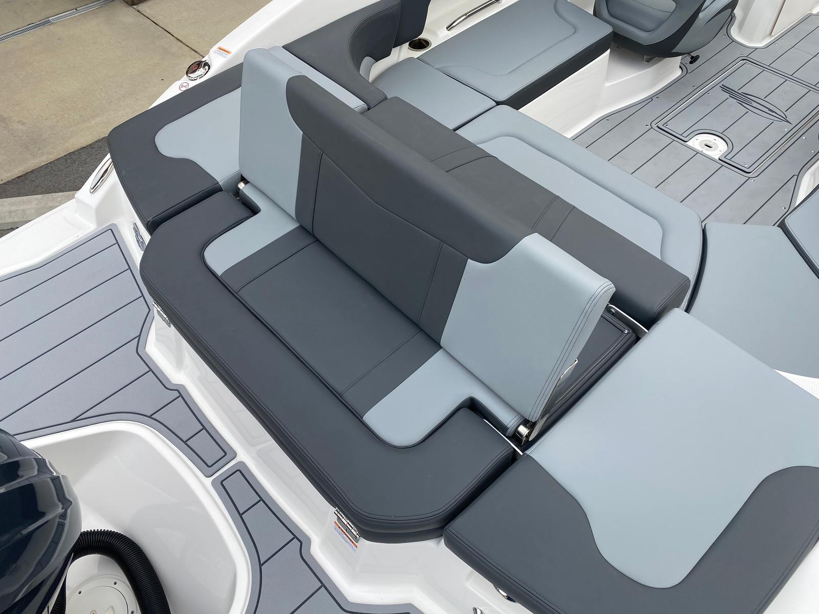 The Chaparral 23 SSI OB is packed with premium features that enhance both functionality and comfort. The gel-coated entire hull in alloy gray not only looks fantastic but also provides added durability and resistance to the elements. The solid hull color bottom further reinforces the boat’s strength and longevity. Inside, the Shadow cockpit interior offers a stylish and comfortable setting, while the standard black canvas provides shade and protection from the sun.One of the standout features is the MTX Folding Arch Tower in white, which adds a sporty flair and makes it easy to store or transport the boat. The deluxe package includes a digital depth gauge for precise navigation, a bimini top with boot or tower top canvas for versatile shade options, and ultra-comfort pedestal seats with flip-up bolsters for both the helm and passenger. These seats ensure that everyone on board enjoys maximum comfort, whether you’re cruising or relaxing at anchor.Additional features include a port console storage door and deluxe badging, snap-in Seadek cockpit flooring in slate for easy cleaning and superior traction, and a galvanized anchor for secure mooring. The Chaparral 23 SSI OB also comes with a 5-year premium level limited component warranty, offering peace of mind and long-term protection for your investment.
