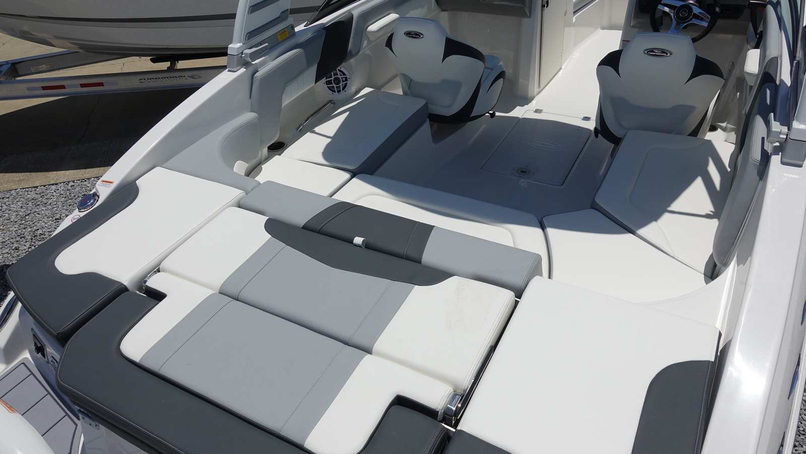 Powering this bowrider is a single, custom-painted Yamaha engine in white, boasting an impressive 250 horsepower. This setup ensures smooth acceleration, responsive handling, and reliable performance, whether you’re towing water skiers or enjoying a leisurely cruise. The engine’s advanced technology provides efficient fuel consumption, allowing you to spend more time on the water and less time refueling. With the Chaparral 23 SSI OB, you’ll experience exhilarating speed and agility, making every outing memorable. The dual battery setup with a crossover switch ensures you have the power you need for extended adventures, giving you peace of mind during long days on the water.
