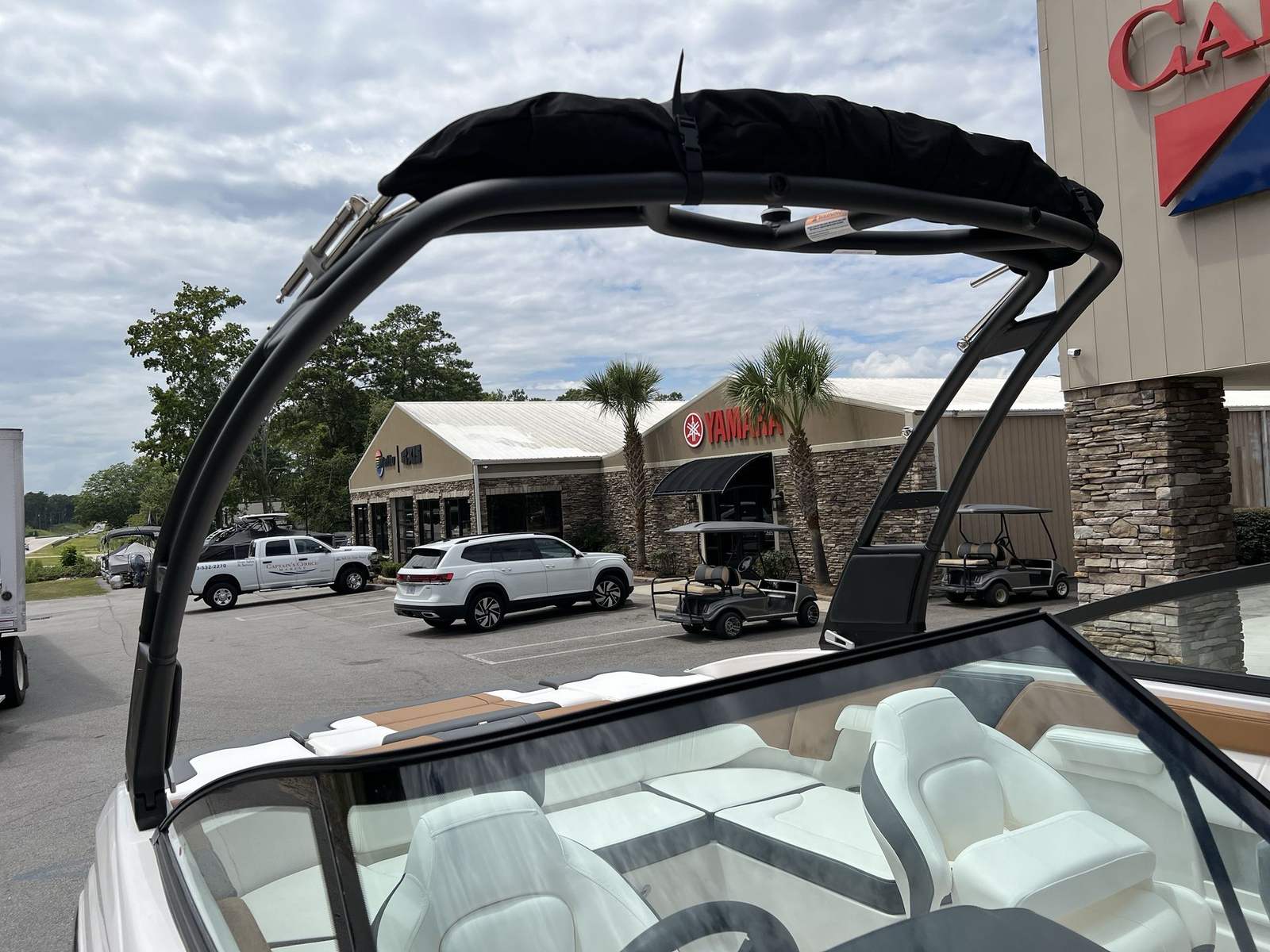 The 2026 Chaparral 23 SSI Bowrider is a brand-new vessel that measures an impressive 23 feet in length, offering ample space for passengers and gear. Chaparral’s reputation for quality craftsmanship is evident in every detail, from the solid hull construction to the eye-catching black gel-coated exterior. The hull bottom features a solid color, giving the boat a bold and modern look that’s sure to turn heads at the marina or on the open water. The Cayenne White Storm cockpit interior adds a touch of sophistication, while the black standard canvas and MTX folding arch tower create a striking visual contrast. This Chaparral boat for sale is designed to make a statement wherever you go.