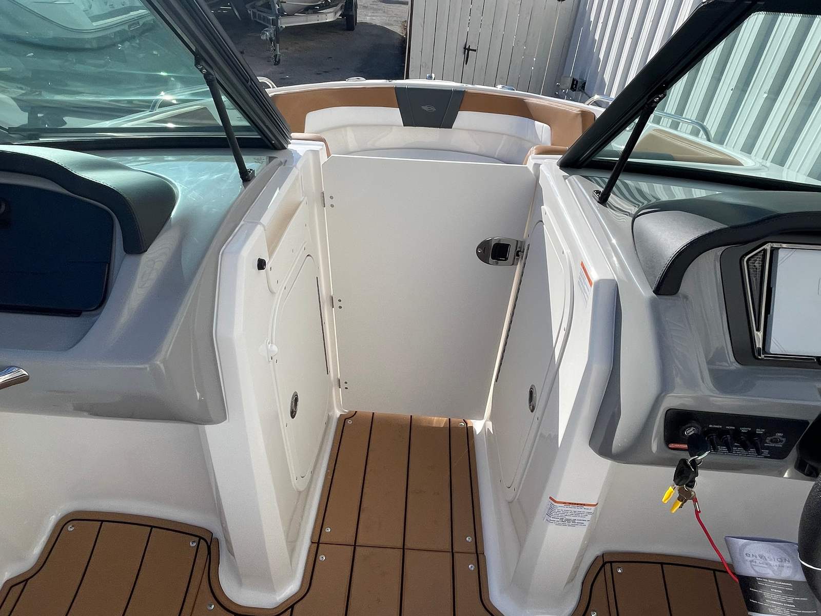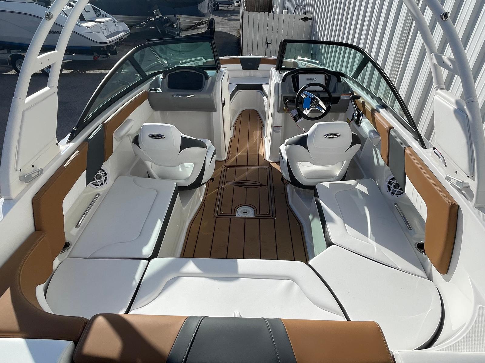 The Chaparral 23 SSI is as practical as it is fun. Its manageable size makes docking and trailering straightforward, while the folding arch tower simplifies storage in garages or boat houses. The mooring cover protects your investment from the elements, reducing maintenance and keeping your boat looking new.The thoughtful layout provides plenty of storage for gear, water toys, and personal items, so you can keep the deck clutter-free and organized. The efficient engine offers a great balance of power and fuel economy, allowing you to spend more time on the water and less time at the pump. The easy-to-clean Seadek flooring and swim platform mat make post-adventure cleanup a breeze, so you can focus on making memories instead of chores.