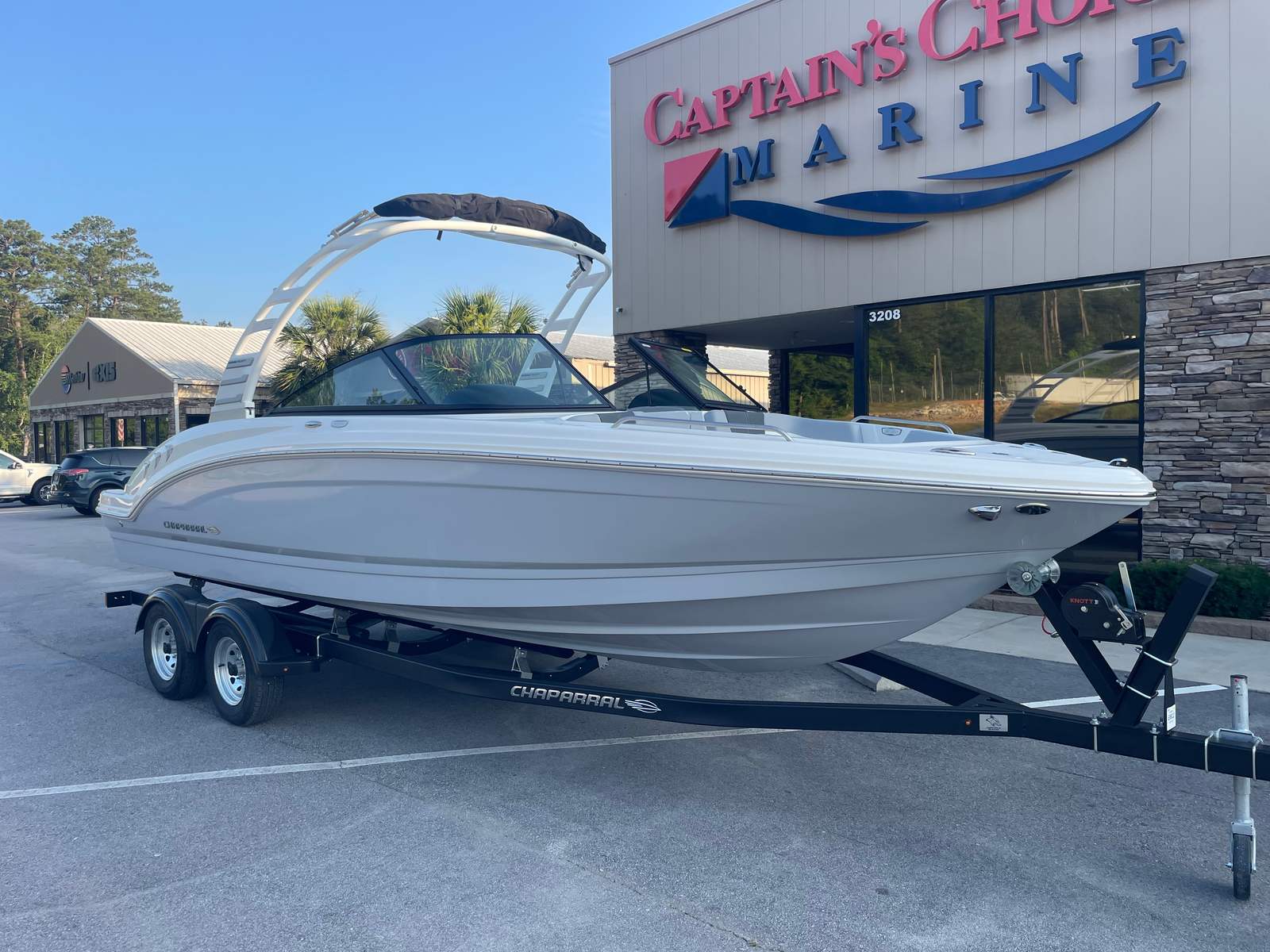 The 2025 Chaparral 23 SSI bowrider shines in a variety of scenarios, making it a versatile choice for any boating lifestyle. Imagine spending sunny afternoons with family and friends, cruising along the shoreline, or anchoring in a quiet cove for a swim. The spacious layout and comfortable seating make it perfect for social gatherings, picnics on the water, or simply relaxing with your favorite music.For adventure seekers, the powerful engine and folding arch tower provide the perfect setup for watersports, from wakeboarding to tubing. Anglers will appreciate the integrated Simrad GO9 Touch Chartplotter/Fishfinder, which makes locating the perfect fishing spot easier than ever. Whether you are planning a weekend getaway, a day of fishing, or an action-packed afternoon of watersports, the Chaparral 23 SSI adapts to your needs and exceeds expectations.