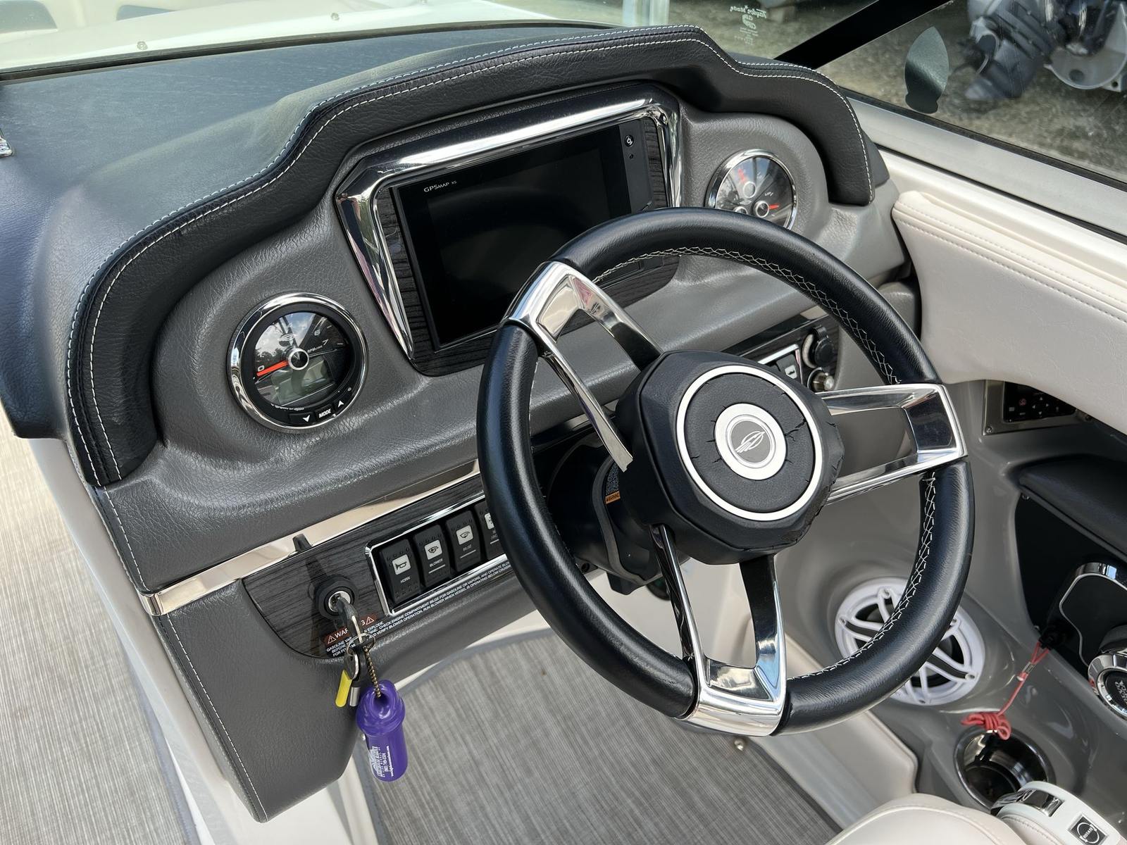 The Chaparral 246 SSI is thoughtfully designed to maximize comfort and convenience for all aboard. Its spacious bow seating area invites guests to relax and soak up the sun, while the open cockpit layout provides ample room for socializing and entertaining. The ergonomic helm station puts controls within easy reach, allowing the captain to navigate with ease and precision. High-quality materials and attention to detail are evident throughout, from the plush upholstery to the stylish accents that define Chaparral’s signature look.With a length of 24.5 feet, this bowrider offers generous space for family and friends, making it ideal for group outings. The smart layout ensures that everyone has a comfortable spot to enjoy the ride, whether lounging in the bow, stretching out in the cockpit, or enjoying the breeze from the swim platform. Storage compartments are strategically placed to keep gear organized and out of the way, enhancing the overall boating experience.