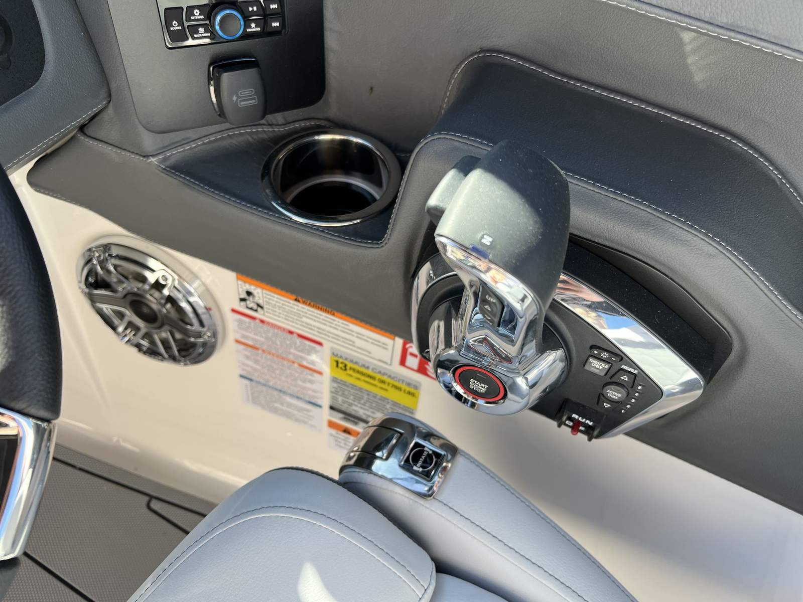 The Chaparral 247 SSX is loaded with premium features that elevate your time on the water. The EFX II electric folding arch tower in white not only adds a striking visual element but also provides practical benefits for towing and storage. The mooring cover keeps your boat protected when not in use, ensuring it remains in pristine condition. The Premium Package enhances your boating lifestyle with thoughtful additions such as a bow scuff plate for added durability, a transom stereo remote for convenient audio control, a transom tilt switch for easy engine adjustments, four fender holders for secure docking, and an air pump for inflatables and water toys.For audiophiles and entertainment seekers, the JL Audio sound system upgrade transforms your boat into a floating concert venue, delivering crystal-clear sound throughout the cockpit and bow. The painted metallic Apex hull graphic and white XL hull designator further accentuate the boat’s sporty and upscale appearance, while the Lunar cockpit interior provides a comfortable and inviting space for relaxation and socializing.