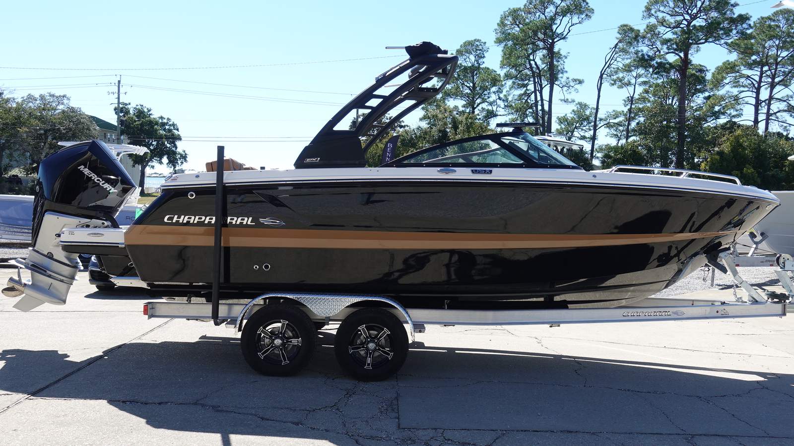 The 2026 Chaparral 250 OSX is a brand-new dual console boat that measures an impressive 26.5 feet in length, offering ample space for relaxation, entertainment, and fun. Crafted by Chaparral, a renowned name in the boating industry, this model showcases the manufacturer’s commitment to quality, innovation, and attention to detail. The sleek Black Edition Hull, complemented by a Painted Metallic Hull Stripe in Cayenne, gives this boat a striking presence on the water. Whether you’re cruising along the coastline or anchored at your favorite spot, the Chaparral 250 OSX is sure to turn heads and make a statement.