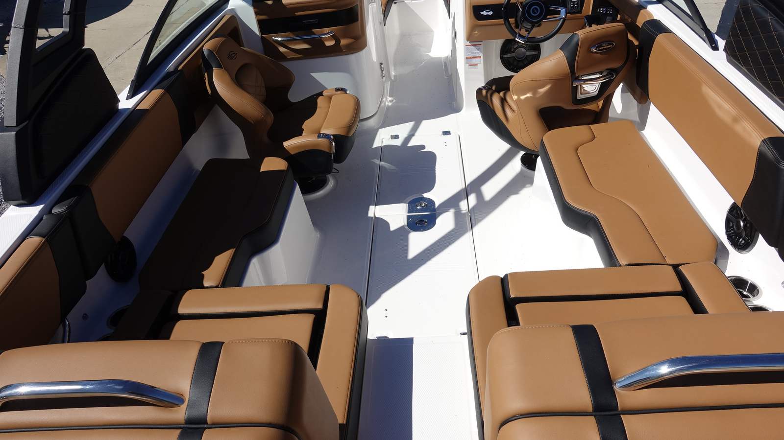 The Chaparral 250 OSX is packed with premium features that elevate your time on the water. The Black Edition Package includes the stylish Black EFX II Tower, enhancing both aesthetics and functionality. The cockpit interior, finished in Black Edition, exudes sophistication, while the Silicone Vinyl Cayenne Color with Black Accent Vinyl adds a touch of modern flair. Black dashes, hardware, and special edition badging further distinguish this model as a true standout.Enjoy superior comfort and protection with the Standard Canvas in Black, Bow Canvas Sky Shade, and Cockpit and Bow Cover. The JL Audio System Upgrade transforms your boat into an entertainment hub, delivering crystal-clear sound for your favorite playlists. Underwater lights create a captivating ambiance for evening outings, while the Premium Package adds practical enhancements such as a Bow Scuff Plate, Transom Stereo Remote, and Air Pump. Trim Tabs with Indicators ensure optimal stability and control, allowing you to tailor your ride to changing conditions.