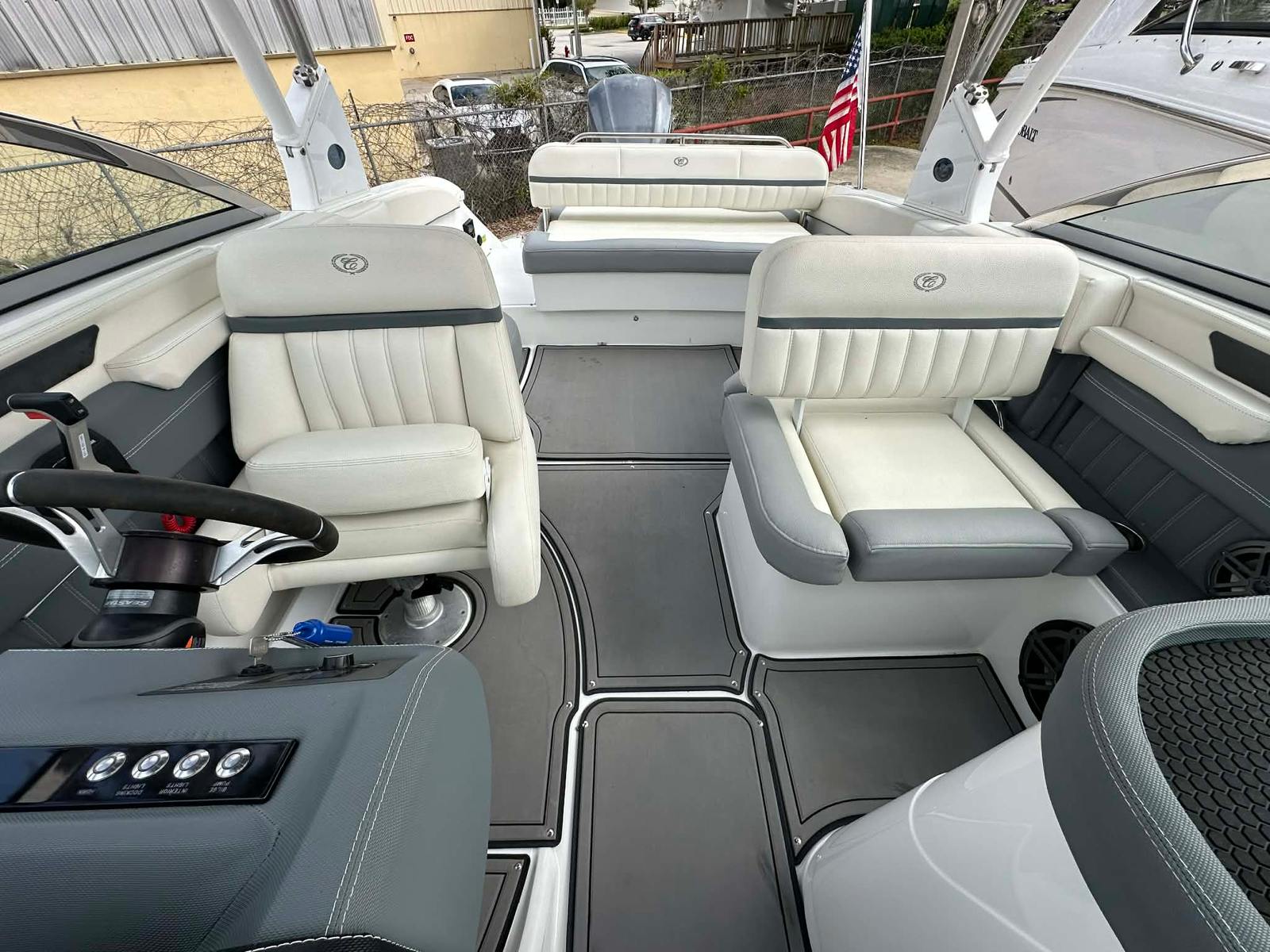 This Cobalt 25 SC center console boat for sale is loaded with features that enhance both functionality and enjoyment. The spacious center console layout provides excellent visibility and easy access to all controls, making navigation intuitive and stress-free. The open deck design allows for flexible seating arrangements, perfect for socializing, sunbathing, or casting a line. The high-quality construction and premium materials used throughout the boat ensure durability and a luxurious feel, setting it apart from other center console boats in its class.The thoughtful design extends to storage solutions, with ample compartments to stow gear, life jackets, and personal items securely. The ergonomic helm station is equipped for comfort and convenience, allowing the captain to command the boat with confidence. The 25-foot length offers a stable and comfortable ride, even in choppier conditions, so you and your guests can relax and enjoy the journey.