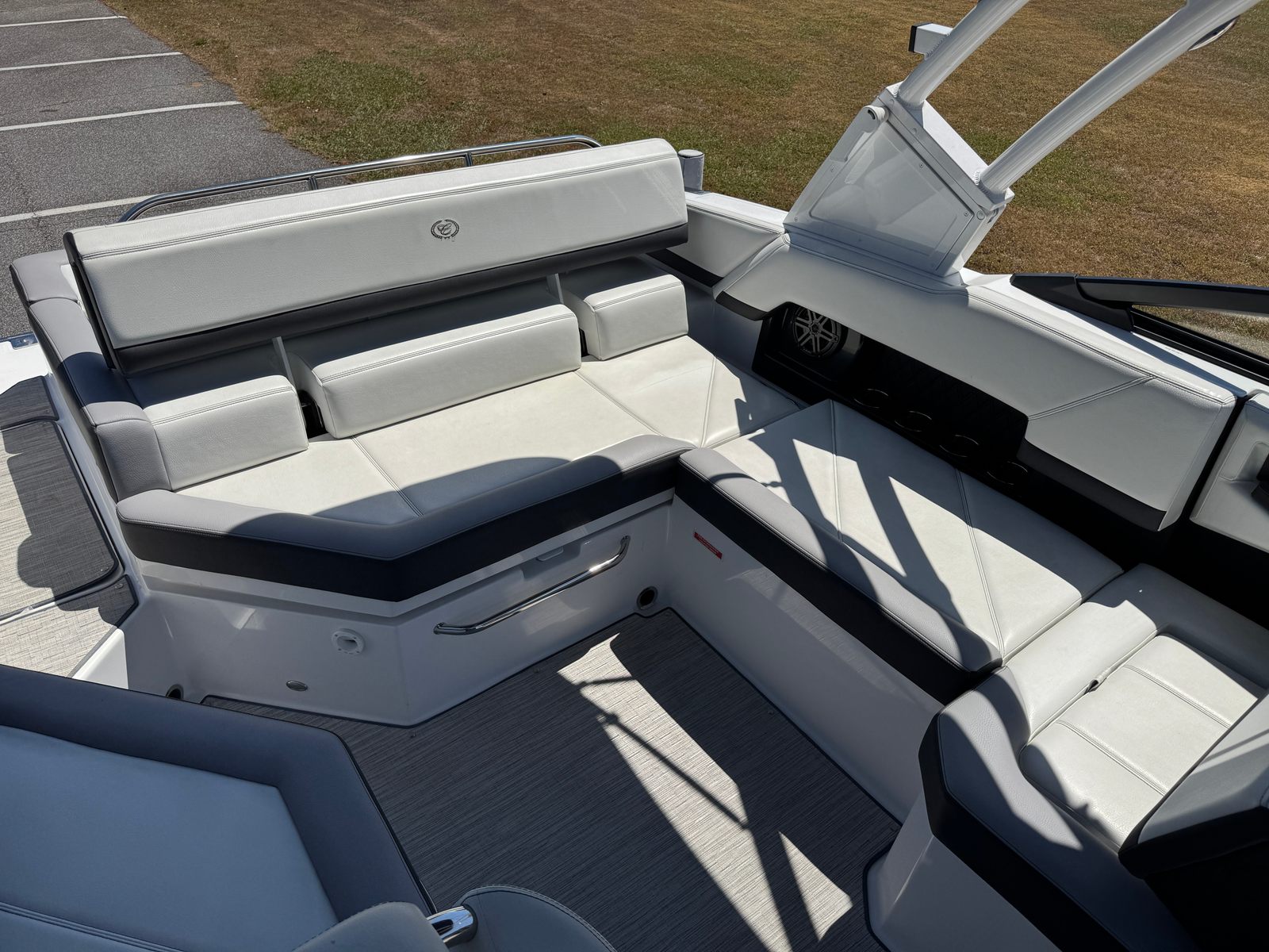 The 2024 Cobalt R4 is packed with features that make every outing enjoyable and memorable. The spacious 24.25-foot layout offers ample seating for guests, with plush upholstery and ergonomic design ensuring comfort throughout the day. The Bowrider configuration provides an open, social atmosphere, allowing everyone on board to relax and enjoy the ride. The R4’s cockpit is thoughtfully arranged for both the captain and passengers, with intuitive controls and easy access to all areas of the boat. Storage is abundant, making it simple to stow away gear, water toys, and personal items for a clutter-free experience. The used Cobalt R4 also boasts premium materials and finishes, reflecting the brand’s commitment to quality and durability.