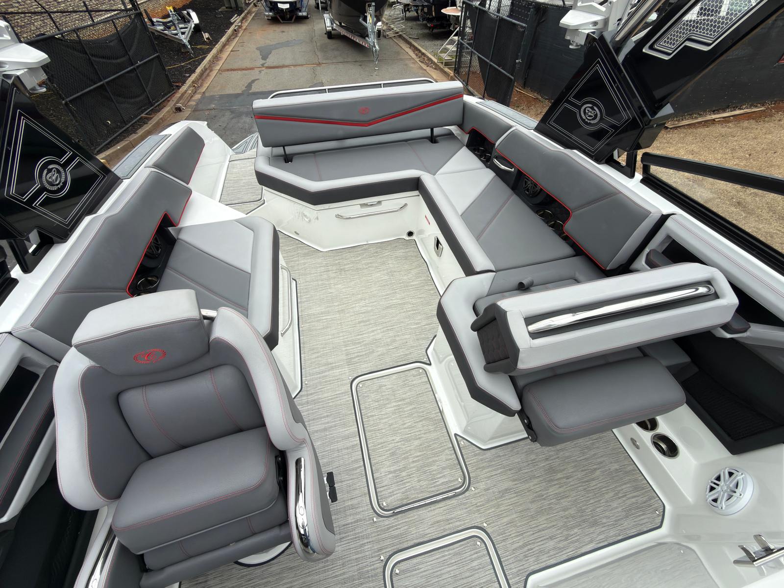 At the heart of the 2022 Cobalt R6 Surf is a powerful 380-horsepower engine, engineered to deliver thrilling acceleration and smooth cruising. Whether you’re carving through waves or gliding across calm waters, this bowrider’s robust powerplant ensures an exhilarating ride every time. The R6 Surf’s advanced hull design enhances stability and maneuverability, making it easy to handle for both seasoned boaters and newcomers alike. With its impressive horsepower, this Cobalt boat for sale is ready to take on any adventure, from high-speed runs to leisurely cruises.