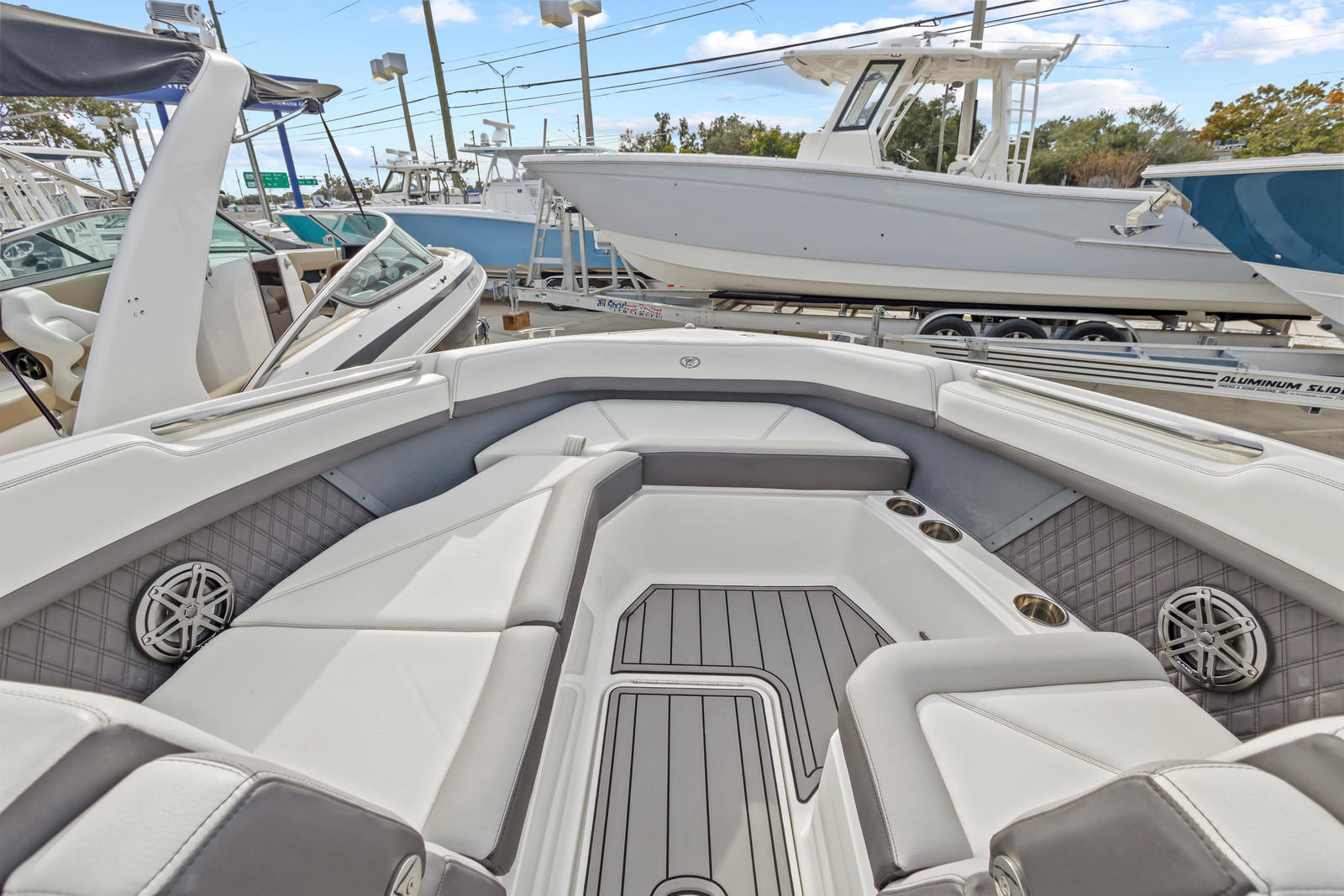 The 2022 Cobalt R8 OB is packed with features that enhance comfort, convenience, and enjoyment on the water. Its spacious Bowrider layout provides plenty of seating for guests, allowing everyone to relax and soak up the sun. The ergonomic design ensures easy movement throughout the boat, while high-quality materials and finishes create a luxurious atmosphere. With a length of 27 feet, this Cobalt boat for sale offers generous deck space for lounging, dining, or socializing. The twin engines not only deliver impressive power but also contribute to the boat’s smooth and stable ride, even in choppy conditions.