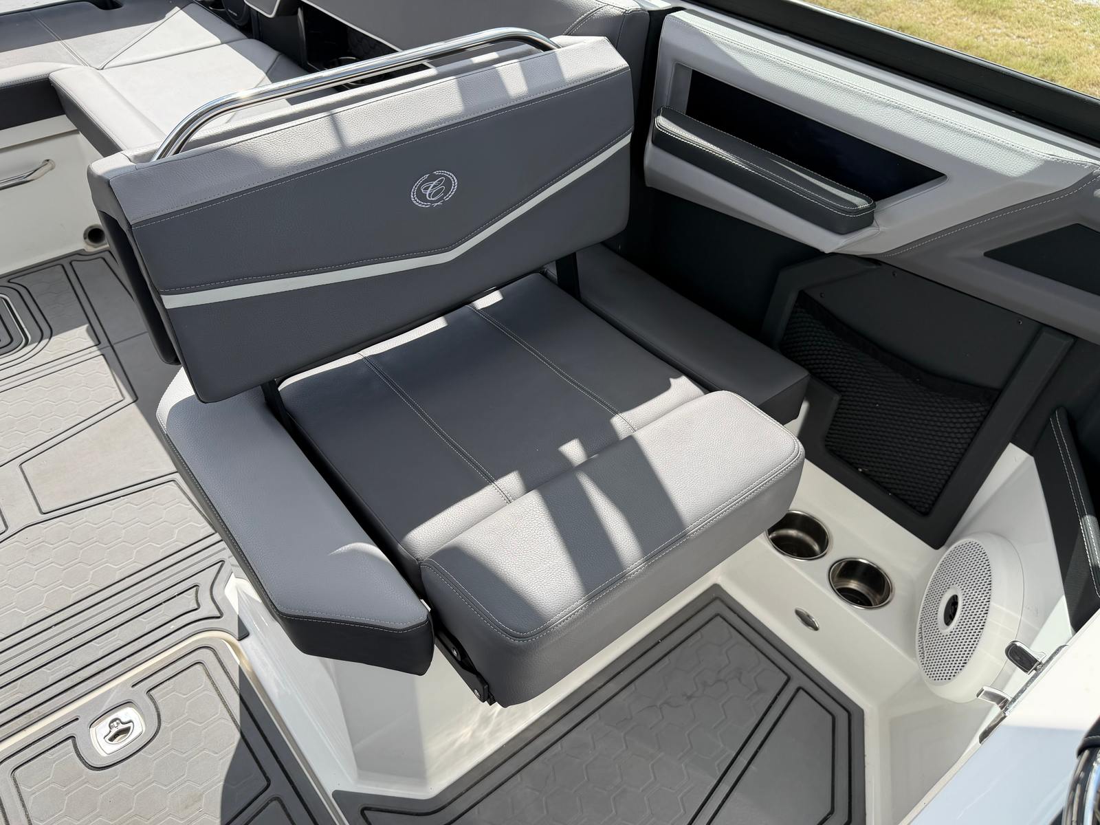 The 2023 Cobalt R8 Surf stands out as a premier bowrider, measuring an impressive 27 feet in length. This used boat is in excellent condition, reflecting the meticulous care it has received. With only 124 engine hours, it promises many more seasons of enjoyment on the water. The R8 Surf’s sleek lines and modern design make it a head-turner at any marina or lake, while its spacious layout ensures there is plenty of room for everyone to relax and enjoy the ride.