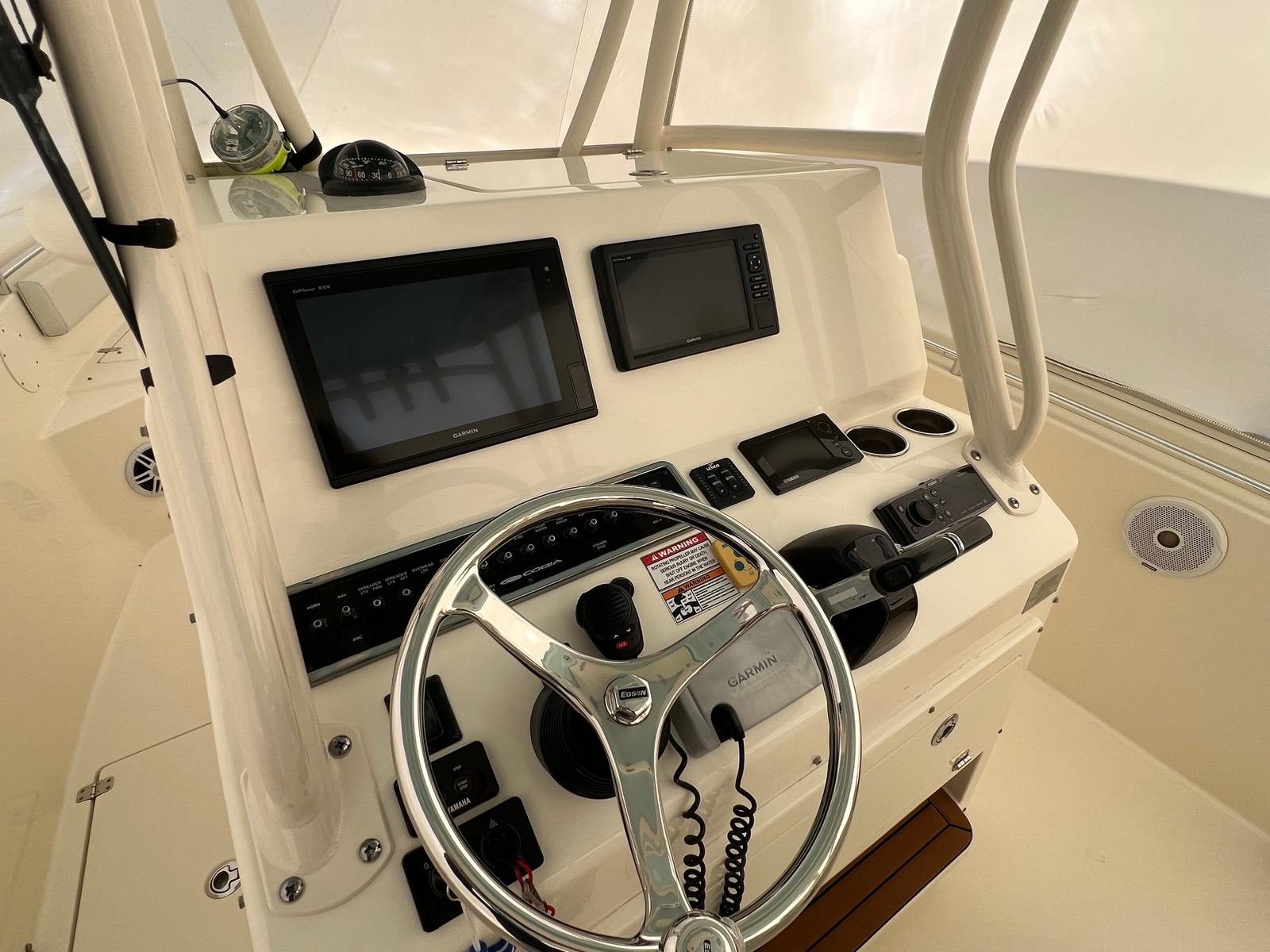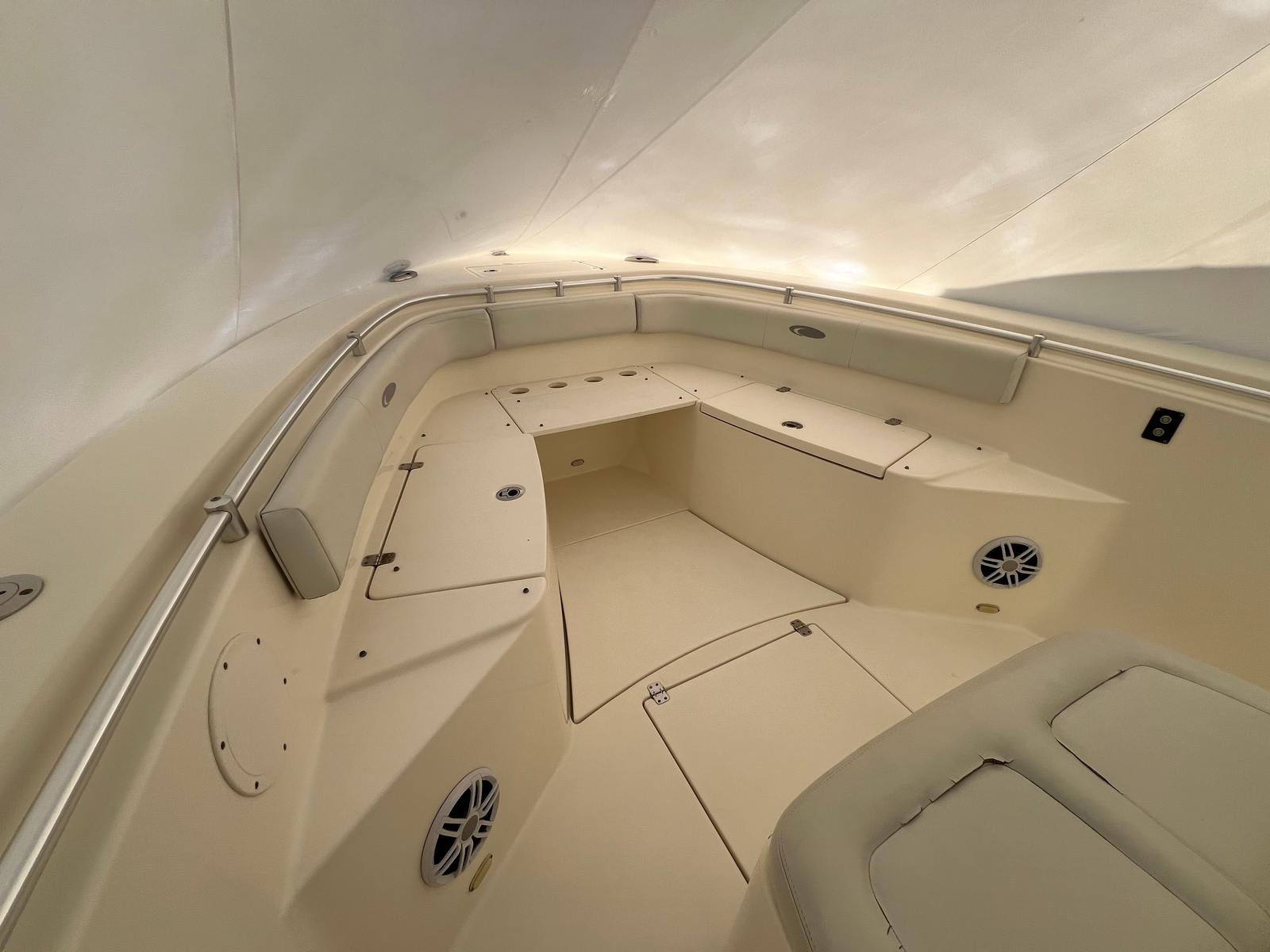 Powering the Cobia 296 CC are two robust engines, delivering a combined 600 horsepower. This impressive setup ensures swift acceleration, smooth handling, and the ability to tackle a variety of water conditions with confidence. With 400 engine hours, these motors have proven their reliability while still offering many more years of dependable service. Whether you’re cruising at high speeds or navigating tight marinas, the twin-engine configuration provides enhanced maneuverability and peace of mind. The Cobia 296 CC’s performance is designed to meet the demands of serious anglers and recreational boaters alike, making it a versatile choice for anyone seeking a powerful Center Console boat for sale.