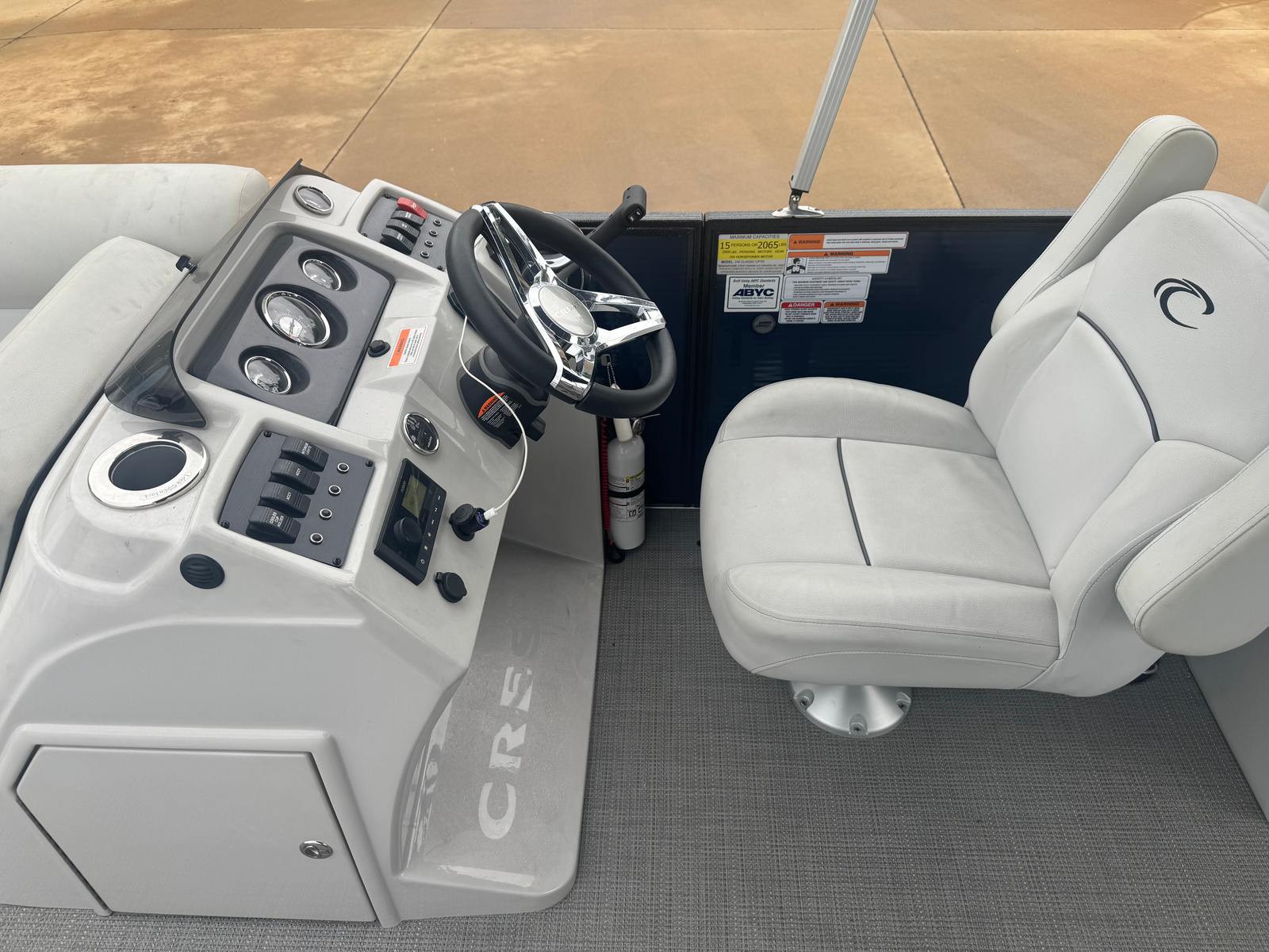 The 2022 Crest 240 Classic Cptd is designed with both relaxation and recreation in mind. Its spacious 24.5-foot length provides ample room for family and friends, making it a top choice among pontoons boats for sale. The open deck layout allows for easy movement and plenty of seating, so everyone can find their perfect spot to soak up the sun or enjoy the shade. The pontoon’s construction is engineered for stability and comfort, ensuring a smooth ride even when the water gets a little choppy.Special features of this Crest 240 Classic Cptd include a captain’s chair for superior comfort and control, as well as a thoughtfully designed helm station that puts all controls within easy reach. The plush seating and premium upholstery create a luxurious atmosphere, while the sturdy fencing and railings provide peace of mind for families with children or pets. Every detail of this Crest boat for sale is crafted to enhance your time on the water, from the stylish exterior to the functional and inviting interior.