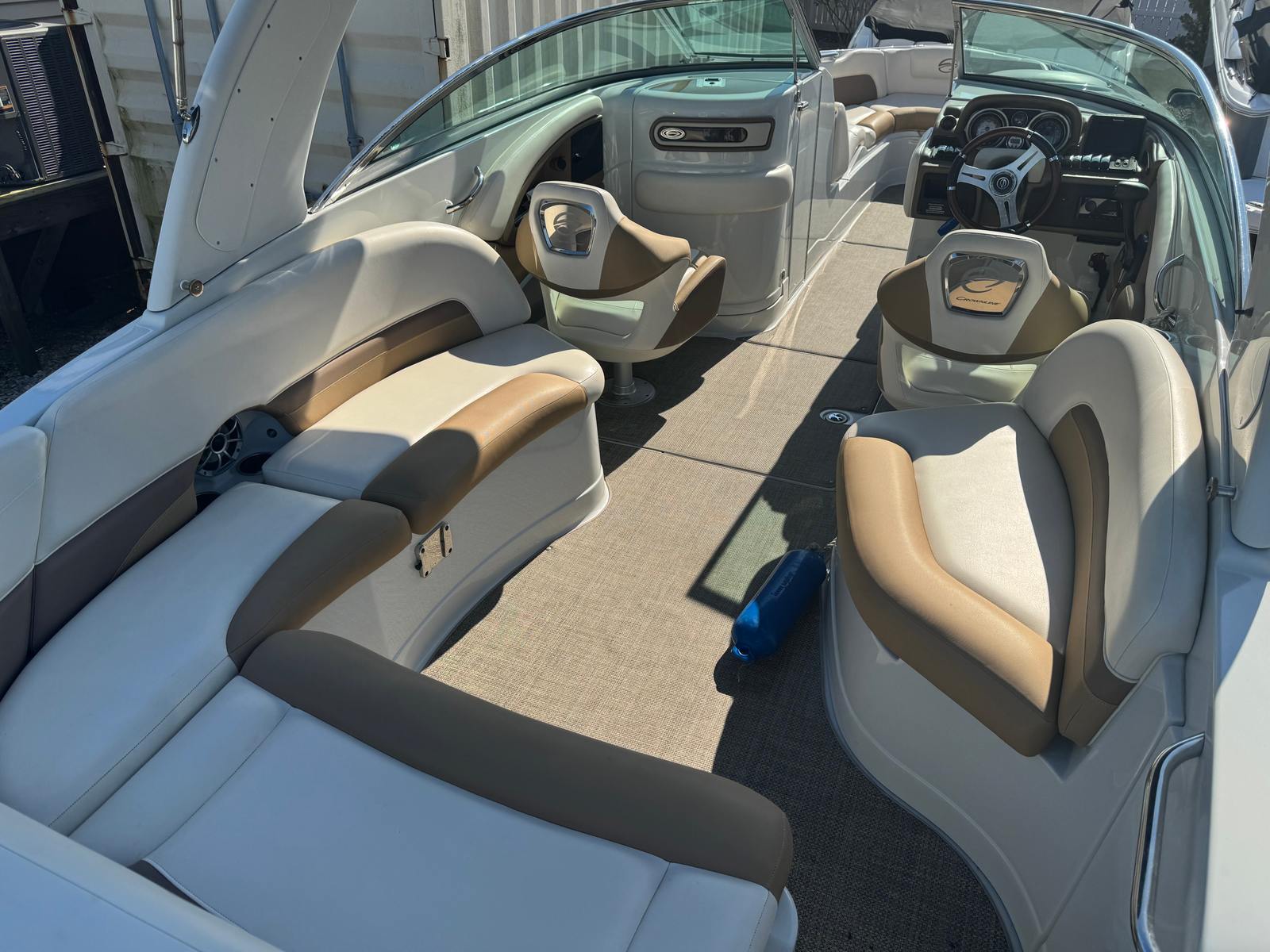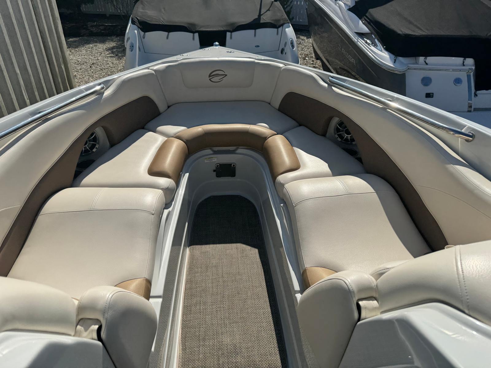 At the heart of the Crownline 285 SS is a powerful single engine delivering an impressive 300 horsepower. This robust engine ensures exhilarating acceleration, smooth cruising, and reliable performance whether you are towing water toys, exploring distant coves, or simply enjoying a leisurely day on the lake. The 300-horsepower output provides the perfect balance of speed and efficiency, making this bowrider boat for sale a joy to operate for both seasoned boaters and newcomers alike. With 320 engine hours, the engine has proven its reliability and is primed for many more adventures on the water.