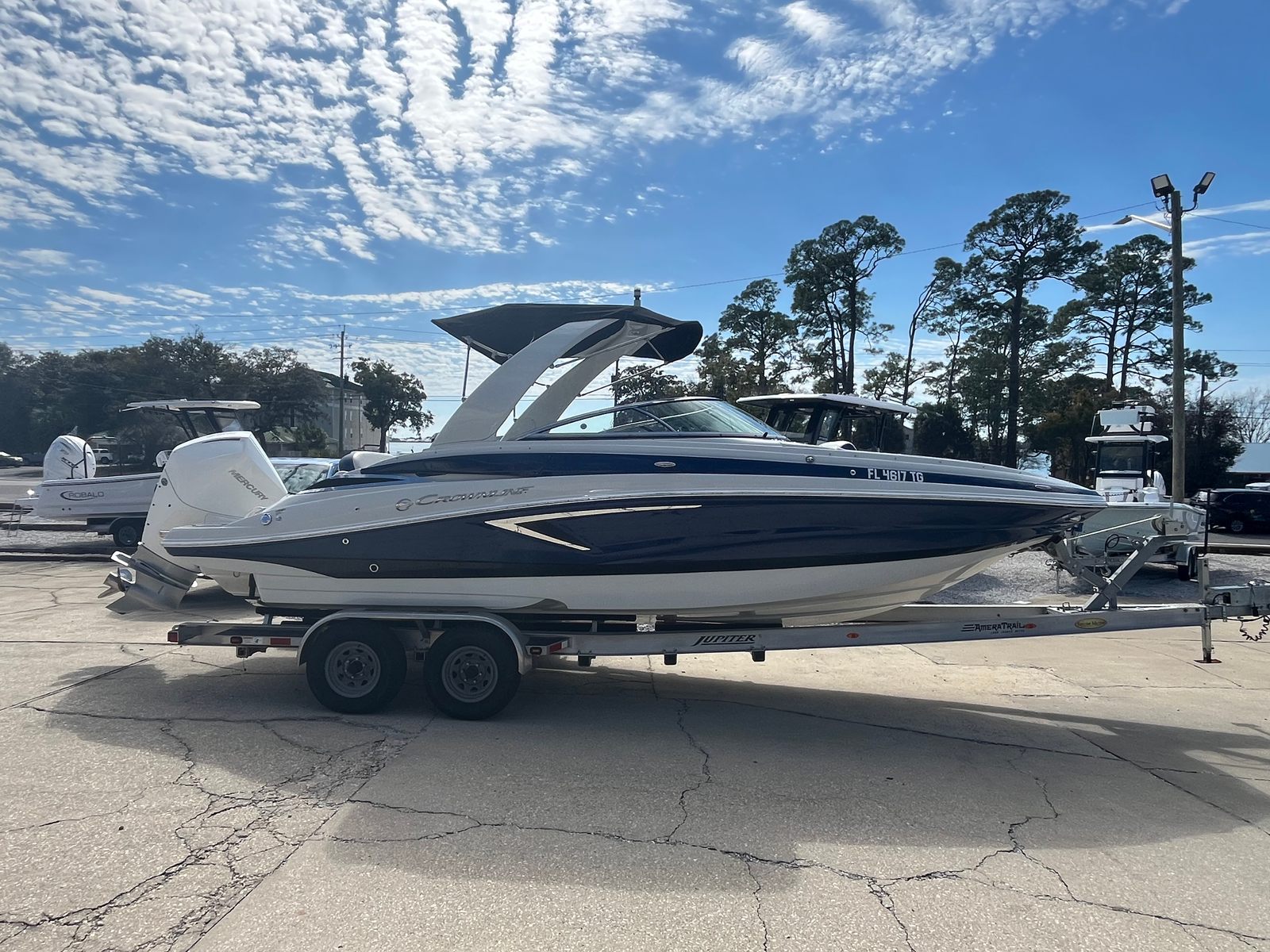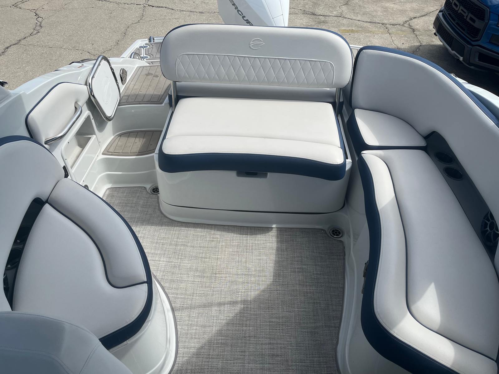 This 2022 Crownline E255 XS is powered by a Mercury 250XL with only 84 hours and has been kept in dry storage, the condition truly shows. A perfect blend of performance, comfort, and style, this boat is turn-key and water-ready.