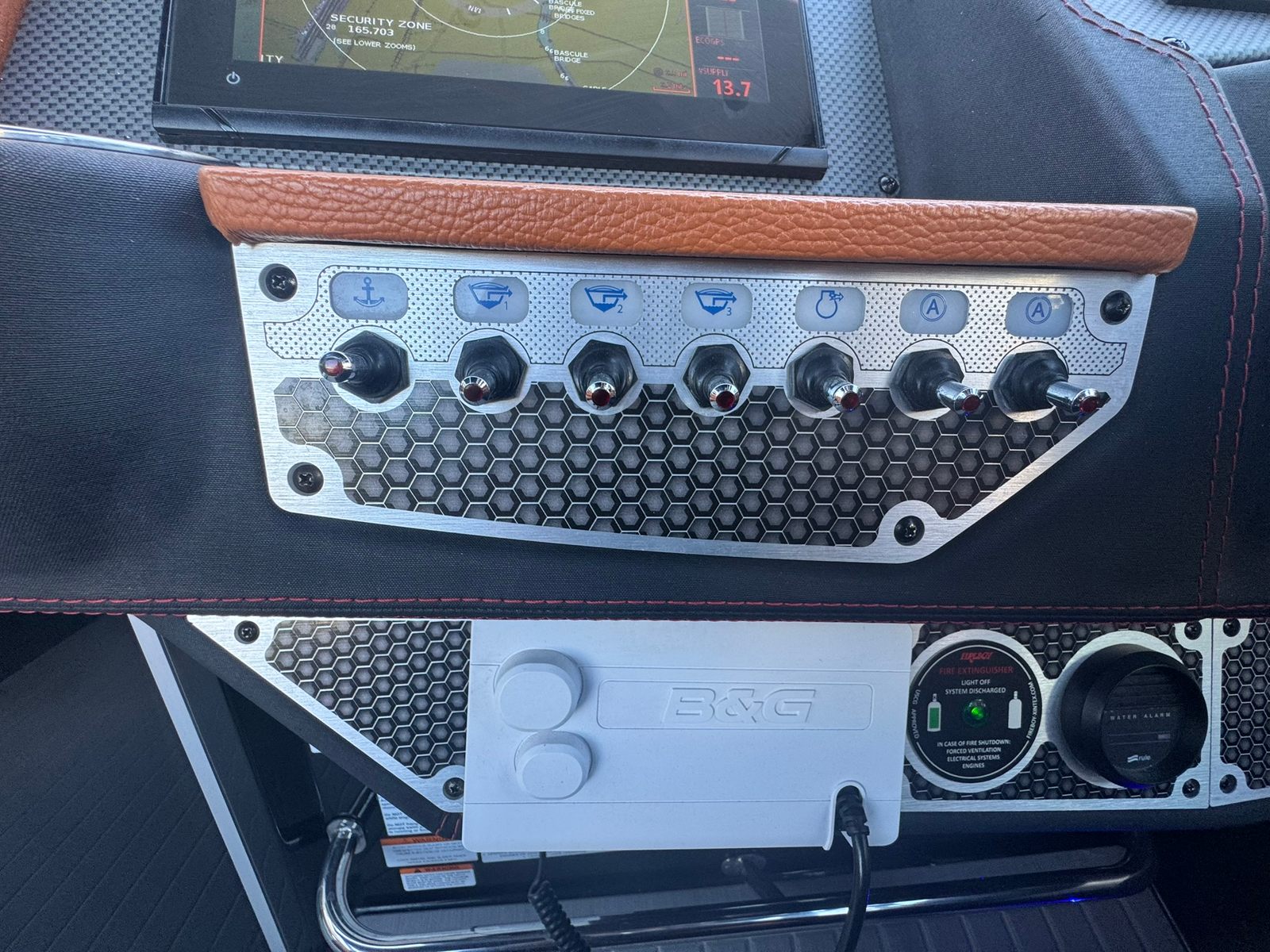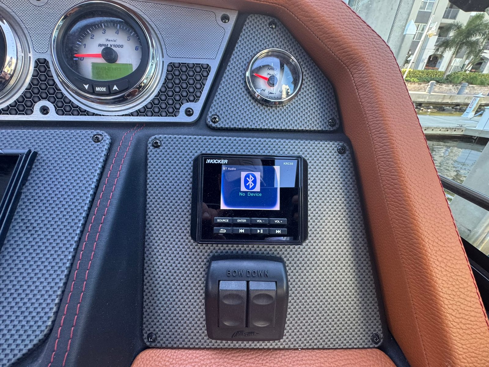 Inside, the boat features full SeaDek flooring and a beautifully finished cabin enhanced with a Lithium power bank that runs the cabin A/C system, making overnights and hot Florida days a breeze—even away from shore power.