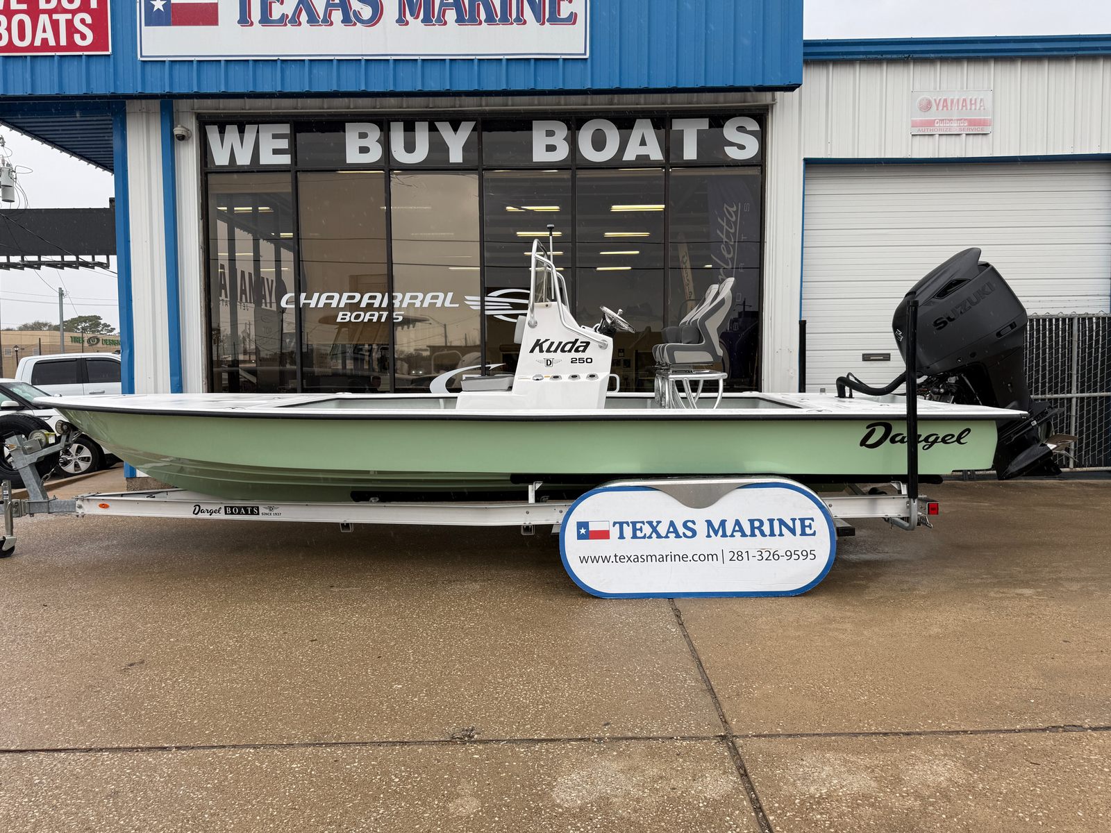 The 2026 Dargel Kuda 250 Center Console is more than just a boat – it’s your ticket to endless adventure, relaxation, and excitement. With its powerful Suzuki DF300APXSS engine, upgraded 25" shaft, racing seat, custom cushions, matte black finish, and included 250 Kuda trailer, this new Dargel boat for sale stands out as a top choice for discerning boaters. If you’re looking for a Center Console boat for sale that combines performance, comfort, and style, the Kuda 250 delivers on every front. Don’t miss your chance to own this exceptional vessel – contact your local dealer today to learn more and start your next great adventure on the water.