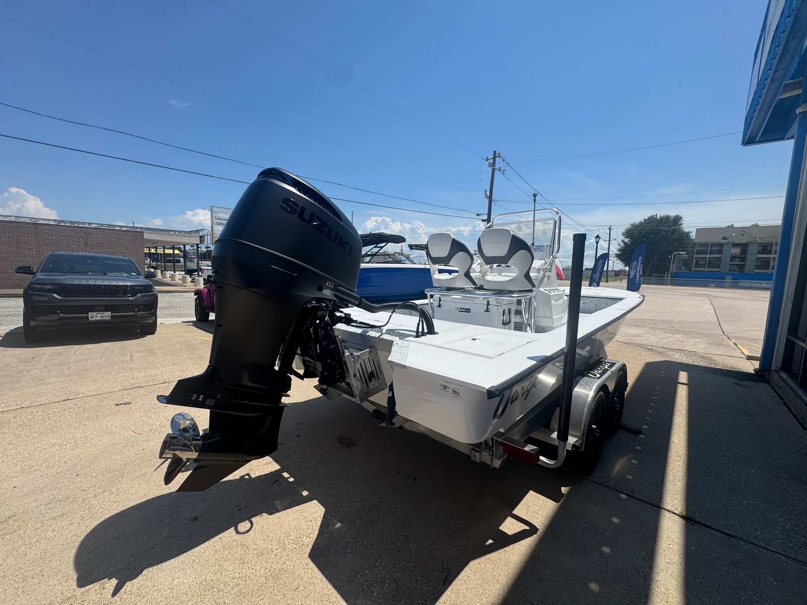 Owning the Dargel Kuda 250 Center Console means unlocking a world of fun and relaxation. The spacious deck layout is perfect for social gatherings, allowing friends and family to spread out and enjoy the sun. The upgraded seating and ergonomic helm ensure that every trip is comfortable, whether you’re cruising, fishing, or simply soaking in the scenery. The livewell guide and wading ladder make fishing excursions more productive and enjoyable, while the trailer adds unmatched convenience for transport and storage.The Kuda 250’s new condition means you’ll benefit from the latest advancements in marine technology, with every component designed for durability and ease of use. The matte black Suzuki engine not only delivers impressive power but also adds a touch of style to your boat’s appearance. With its versatile features and spacious design, this Center Console boat is the perfect platform for creating lasting memories on the water.