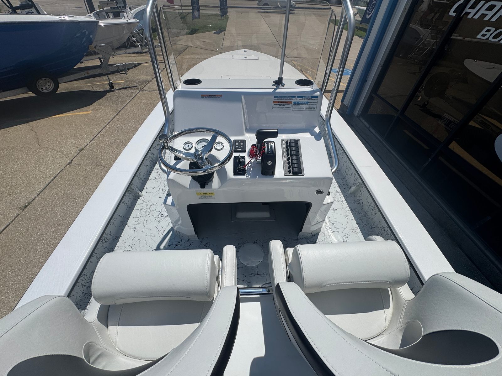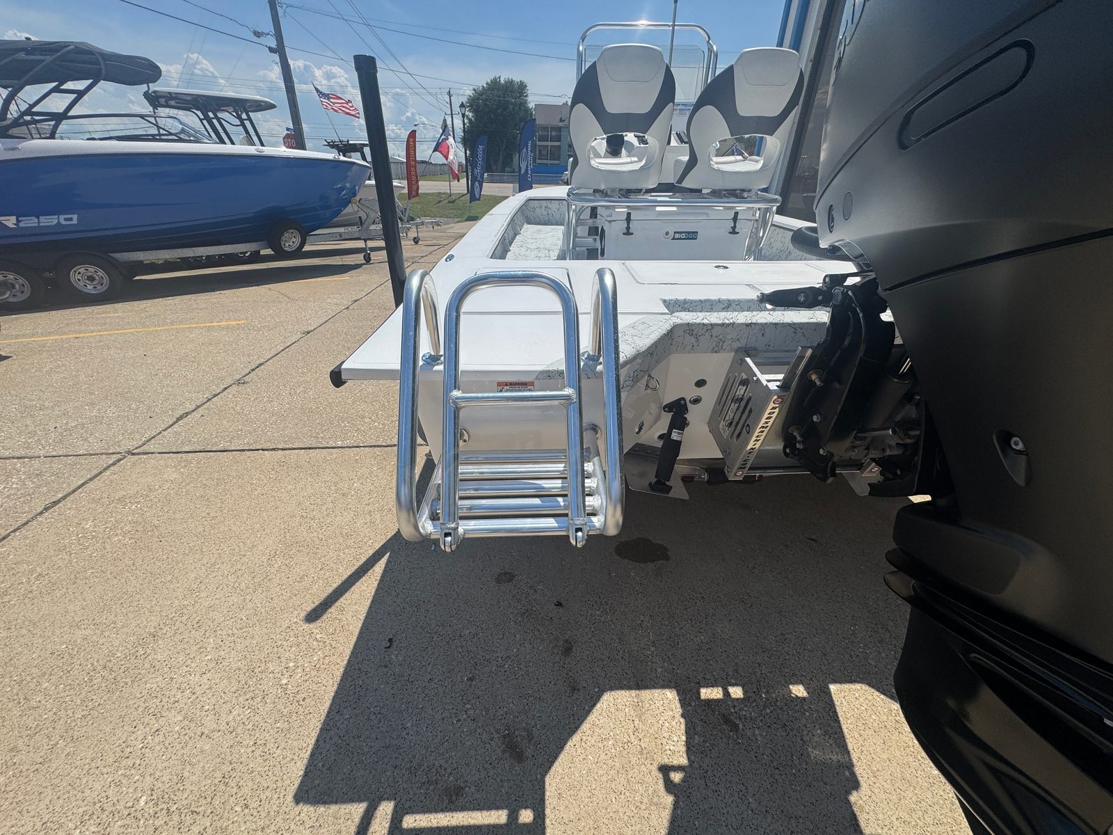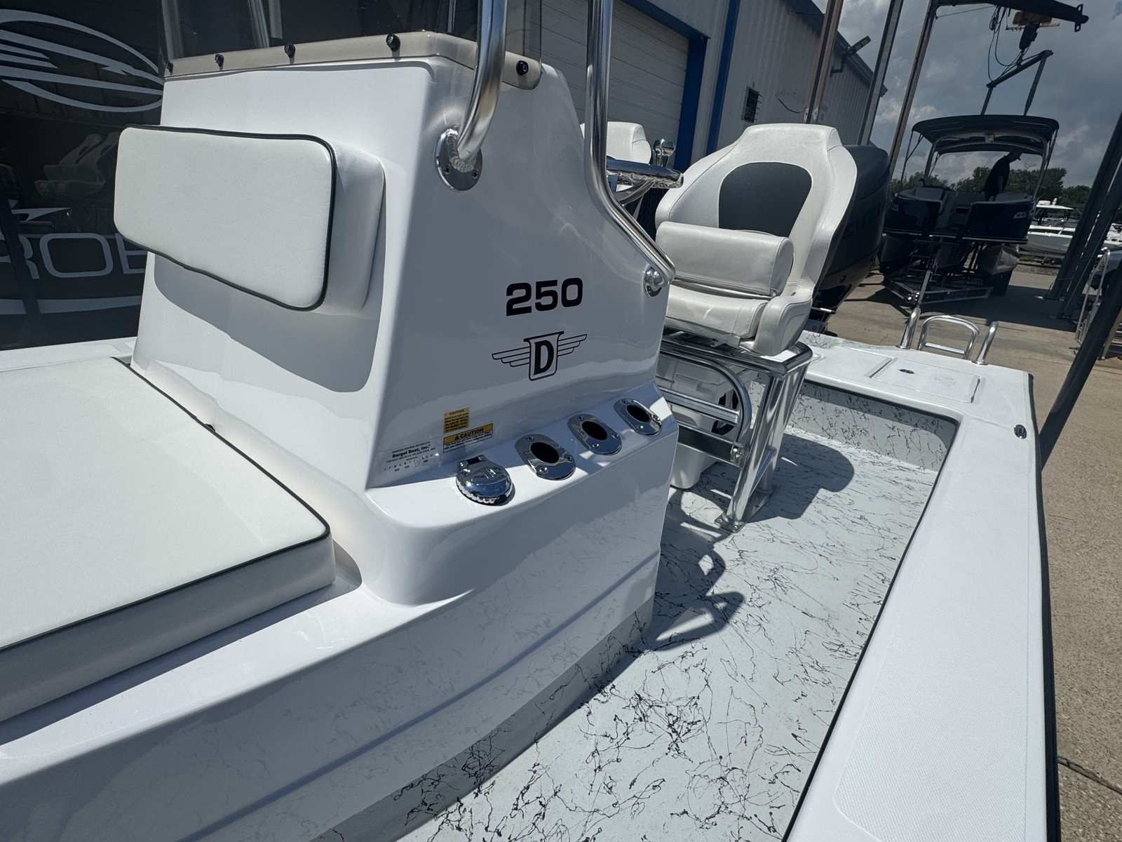 The Dargel Kuda 250 Center Console is packed with premium features designed to elevate your boating experience. The included 250 Kuda Trailer offers convenient transport and storage, making it easy to take your boat wherever adventure calls. The stainless steel steering wheel with knob and tilt helm provide precise handling and ergonomic comfort, ensuring effortless navigation. For those who love exploring shallow waters, the double-step wading ladder offers safe and easy access in and out of the boat.The racing seat upgrade brings a sporty edge to the helm, offering superior support during high-speed runs or long days on the water. The console has been upgraded with a livewell guide, perfect for anglers who want to keep bait fresh and accessible. The guide console backrest cushion adds an extra layer of comfort, making long journeys more enjoyable. Each feature is thoughtfully integrated to enhance both leisure and functionality, setting the Kuda 250 apart from other Center Console boats for sale.