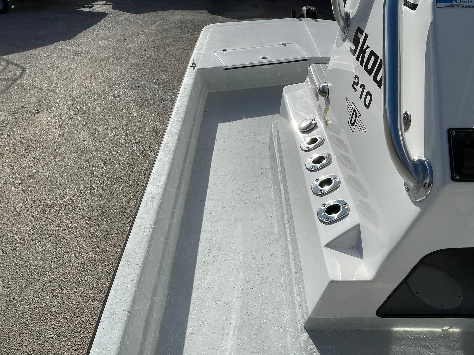 The Dargel Skout 210 is packed with special features designed to enhance your boating experience. The included 210 Skout trailer makes transportation and storage a breeze, giving you the freedom to explore new waters whenever the mood strikes. The gelcoat stripe not only adds visual appeal but also provides an extra layer of protection against the elements. The steering wheel with knob and tilt helm offer ergonomic control, allowing for effortless navigation and comfortable steering during long days on the water.For those who love to wade and explore shallow areas, the wading ladder single step provides easy access in and out of the boat. The deluxe leanpost upgrade and split footrest ensure maximum comfort for both captain and crew, making every journey enjoyable. The skouting bar with footrest over the helm is a thoughtful addition, offering extra stability and convenience for anglers and passengers alike. These features combine to create a Center Console boat that’s as functional as it is stylish.