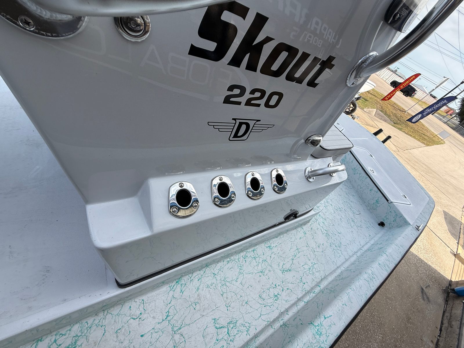 The Dargel Skout 220 is loaded with special features designed to enhance your time on the water. The eye-catching gelcoat stripe and special color hull not only add to the boat’s visual appeal but also reflect Dargel’s commitment to quality and craftsmanship. The guide console provides excellent visibility and control, making navigation intuitive and safe.Trim Tabs 9X9 are included, allowing you to fine-tune your ride for optimal comfort and efficiency, regardless of changing water conditions. The stainless steering wheel with knob and tilt helm offer precise steering and ergonomic comfort, ensuring you remain in control during long days on the water. Grab handles are strategically placed for safety and convenience, while the single step wadding ladder makes boarding from the water effortless.The deluxe lean post and split footrest provide superior comfort and support, whether you are fishing, cruising, or simply relaxing. Every feature is thoughtfully designed to maximize functionality and enjoyment, making the Skout 220 a standout among center console boats for sale.
