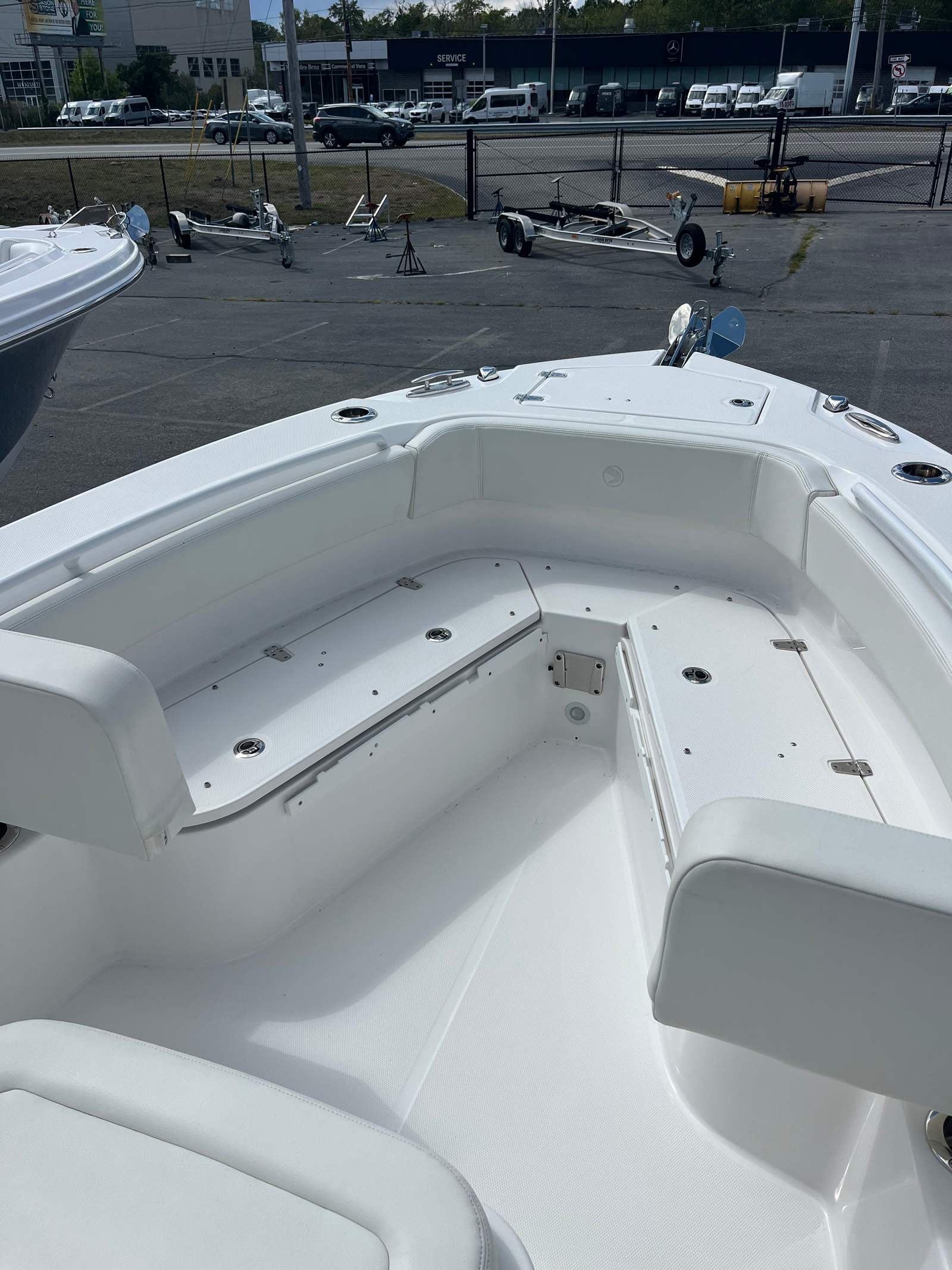 The 2023 Edgewater 230 CC is a used center console boat that measures an impressive 24.5 feet in length, offering ample space for passengers and gear. With its sleek lines and modern design, this boat is as visually striking as it is functional. The Edgewater 230 CC is renowned for its durability and stability, providing a safe and comfortable ride in a variety of water conditions. With only 17 engine hours, this boat is in excellent condition, offering the benefits of a nearly new vessel at a used boat price. Its thoughtful layout and high-quality construction make it a standout option for anyone searching for a center console boat for sale.
