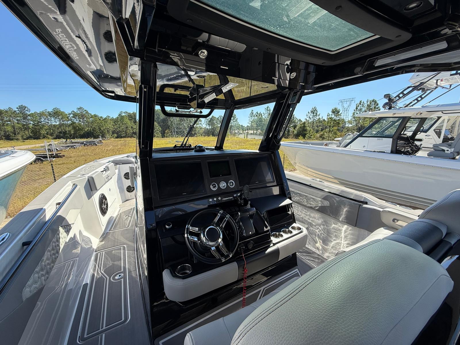 The 2023 Fountain 38 SCX is a 38-foot Center Console boat that embodies the legendary Fountain commitment to innovation and quality. This model is designed to impress, whether you’re cruising along the coastline, heading offshore for a fishing expedition, or enjoying a day of watersports with family and friends. Its striking profile and modern lines make it an eye-catching vessel at any marina, while its robust construction ensures durability and reliability for years to come. As a used Fountain boat for sale, this 38 SCX offers the perfect balance of value and high-end features, making it an attractive option for discerning boaters.