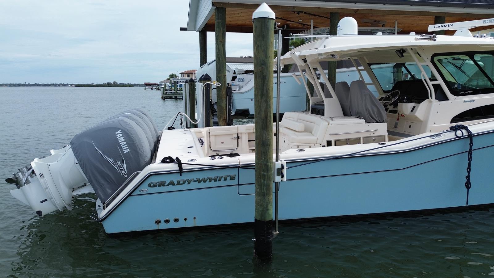 Power and performance are at the heart of the Grady-White Canyon 456. Equipped with four powerful engines delivering a combined 1,700 horsepower, this Center Console boat is built for speed, agility, and reliability. With only 450 engine hours, these engines offer plenty of life and promise exhilarating rides for years to come. The advanced engineering behind the Canyon 456 ensures smooth acceleration, responsive handling, and the ability to reach your favorite destinations quickly and efficiently. Whether you are cruising along the coastline or heading offshore for a day of fishing, this Grady-White boat for sale delivers a thrilling and dependable experience every time you take the helm.