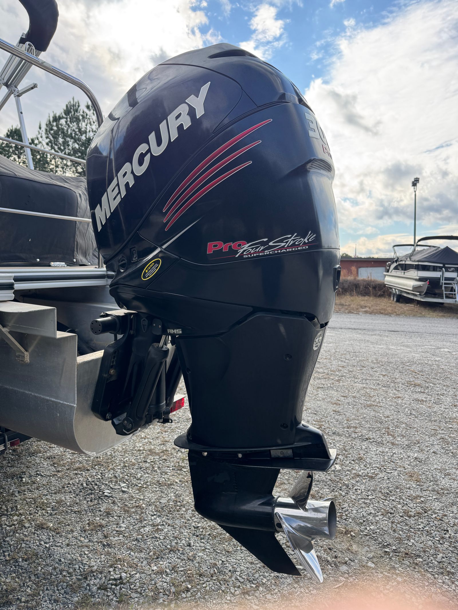 The 2012 Harris Grand Mariner 250 stands out with its generous 27-foot length, providing ample space for guests, gear, and all your favorite on-water activities. This used pontoon boat is in excellent condition, reflecting the care and attention it has received over its lifetime. With a sleek profile and modern lines, the Grand Mariner 250 is as visually appealing as it is functional. Its spacious deck layout is designed for maximum comfort, making it the ideal choice for those who value both style and utility in their boating adventures.