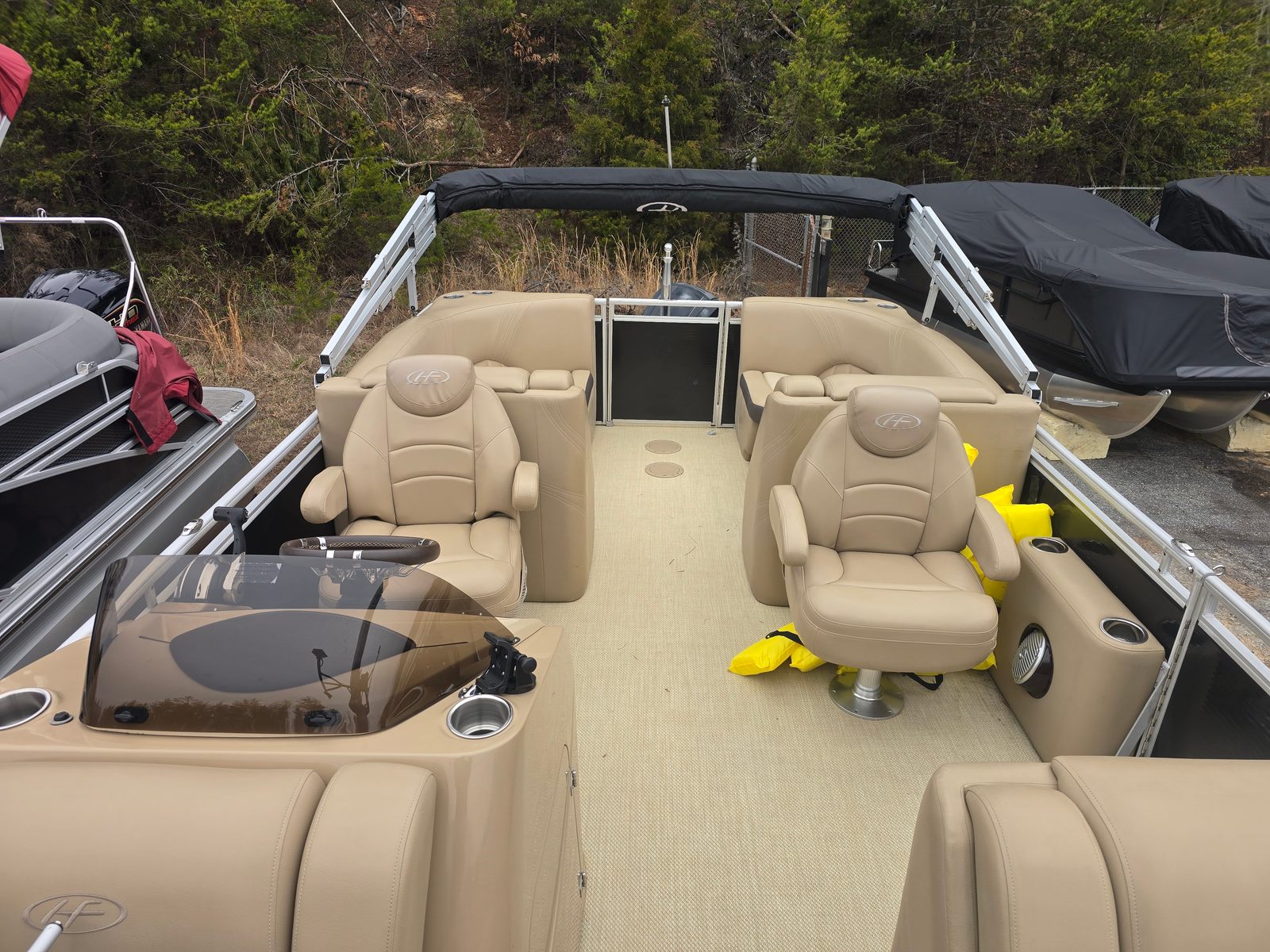 Powered by a single engine with 150 horsepower, the Harris Solstice 220 delivers a perfect balance of power and efficiency. The 150 HP engine ensures responsive handling and smooth acceleration, allowing you to cruise comfortably or pick up the pace for water sports and towing. With only 200 engine hours, this pontoon boat for sale promises reliable performance for years to come. Whether you’re navigating calm lakes or exploring winding rivers, the Solstice 220 offers a confident and enjoyable ride.