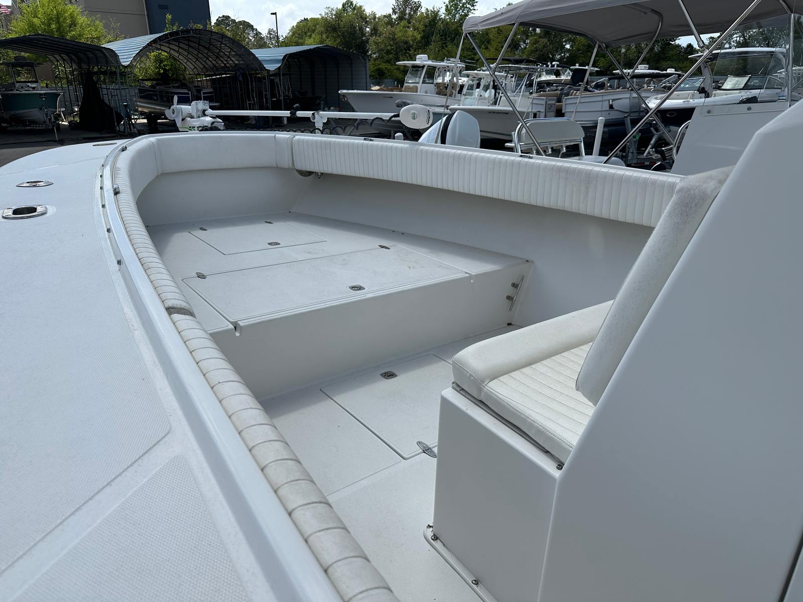 Practicality is a hallmark of the Jupiter 31 HFS. The center console configuration provides ample storage for gear, tackle, and personal items, keeping the deck uncluttered and organized. The 31-foot length makes docking and trailering more manageable compared to larger vessels, while still offering plenty of space for passengers and equipment. The twin engines not only enhance performance but also contribute to fuel efficiency when operated at cruising speeds, making this center console boat for sale a cost-effective choice for frequent outings.Maintenance is simplified thanks to Jupiter’s reputation for building boats that are easy to care for and maintain. The durable construction and quality materials ensure that this used Jupiter boat for sale remains a reliable companion for years to come. Whether you’re heading out for a quick afternoon escape or planning an extended trip, the Jupiter 31 HFS is equipped to handle your needs with ease.