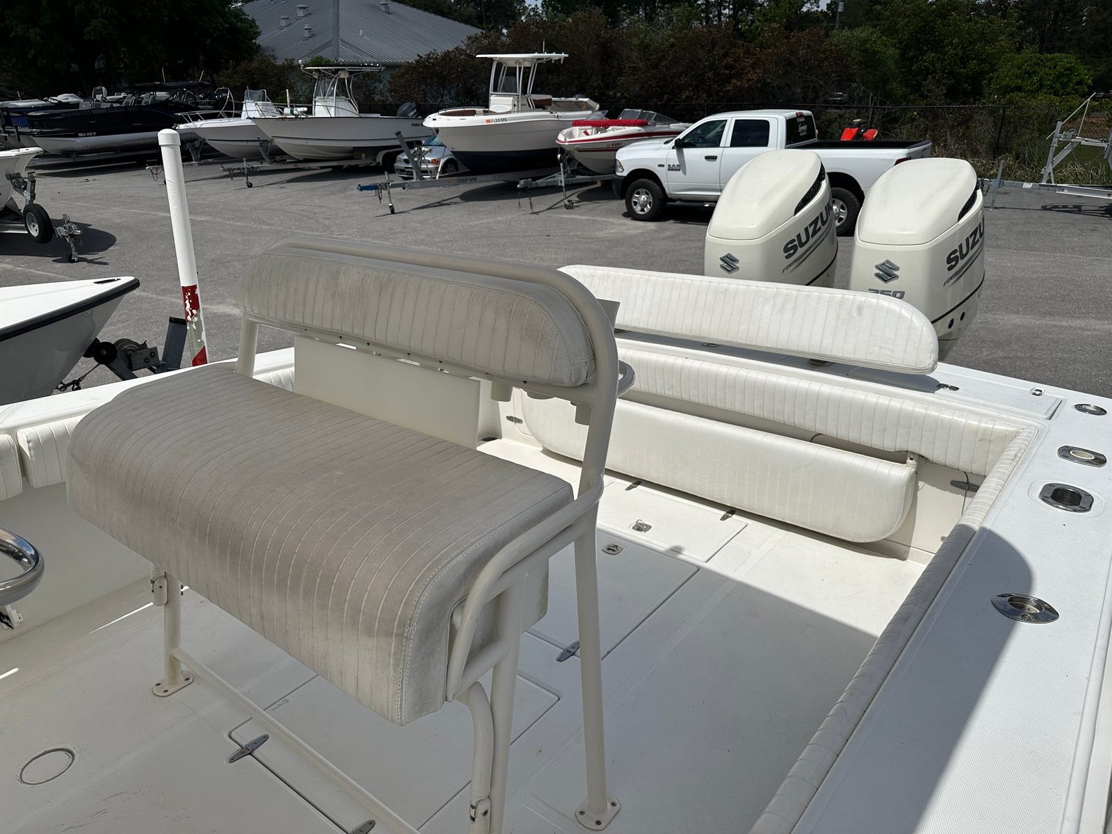The 2003 Jupiter 31 HFS is designed with both functionality and comfort in mind. Its center console layout maximizes deck space, allowing for easy movement around the boat—an essential feature for anglers and families alike. The helm is thoughtfully arranged for intuitive control, while the open cockpit provides ample room for fishing, lounging, or entertaining guests. The robust construction and attention to detail are evident throughout, reflecting Jupiter’s commitment to quality and safety.Special features of this Jupiter boat for sale include its twin-engine configuration, which not only boosts performance but also adds a layer of redundancy for peace of mind on longer journeys. The 31-foot length strikes the perfect balance between spaciousness and manageability, making it suitable for a wide range of activities and water conditions. As a used center console boat, it offers the advantage of proven durability, with a reputation for holding its value and delivering years of dependable service.