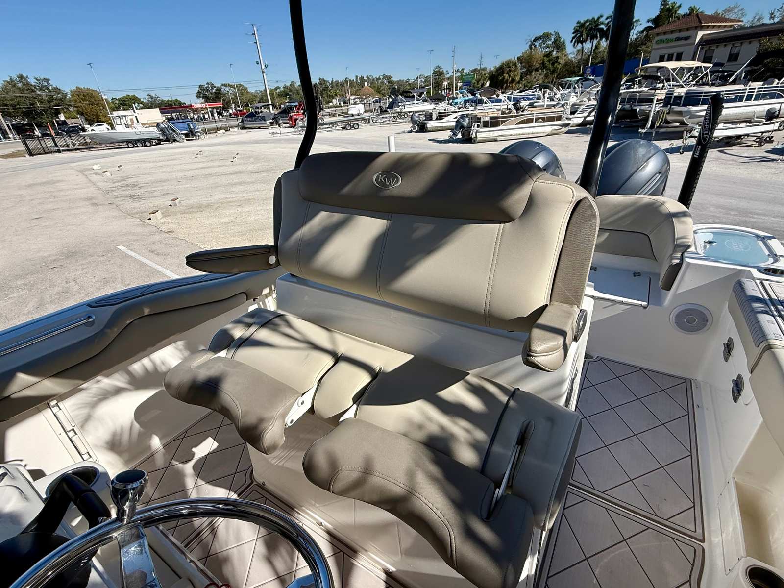 Powering this Key West 263 FS are twin engines, delivering a combined 400 horsepower for exhilarating performance. The dual-engine setup ensures smooth acceleration, responsive handling, and the confidence to tackle a range of water conditions. Whether you are navigating coastal waters, heading offshore, or exploring hidden coves, the robust powertrain provides the speed and agility you need for both adventure and relaxation. The 263 FS is engineered for efficiency and reliability, making it a standout choice among center console boats for sale.