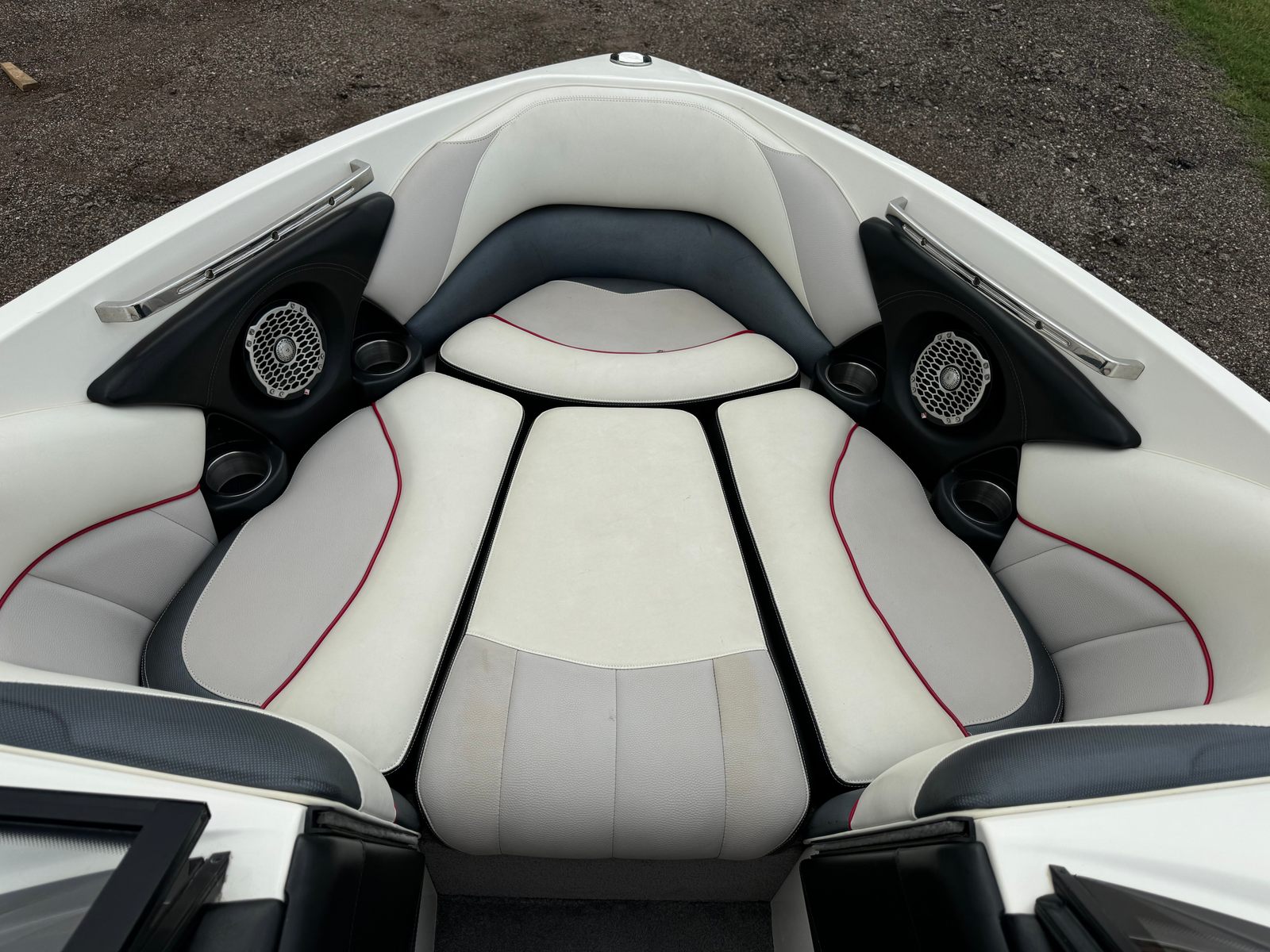 The Malibu Wakesetter 247 LSV is packed with features that cater to both serious water sports enthusiasts and those seeking relaxation on the water. Its spacious 25-foot layout offers plenty of seating for family and friends, ensuring everyone has a comfortable spot to enjoy the ride. The boat’s design maximizes storage space, making it easy to stow away wakeboards, skis, life jackets, and other gear, keeping the deck clutter-free and organized. The advanced hull design is specifically crafted to produce large, clean wakes, giving riders the perfect launch pad for tricks and jumps. The intuitive helm layout puts all controls within easy reach, allowing the captain to focus on the fun while maintaining full command of the boat’s systems.