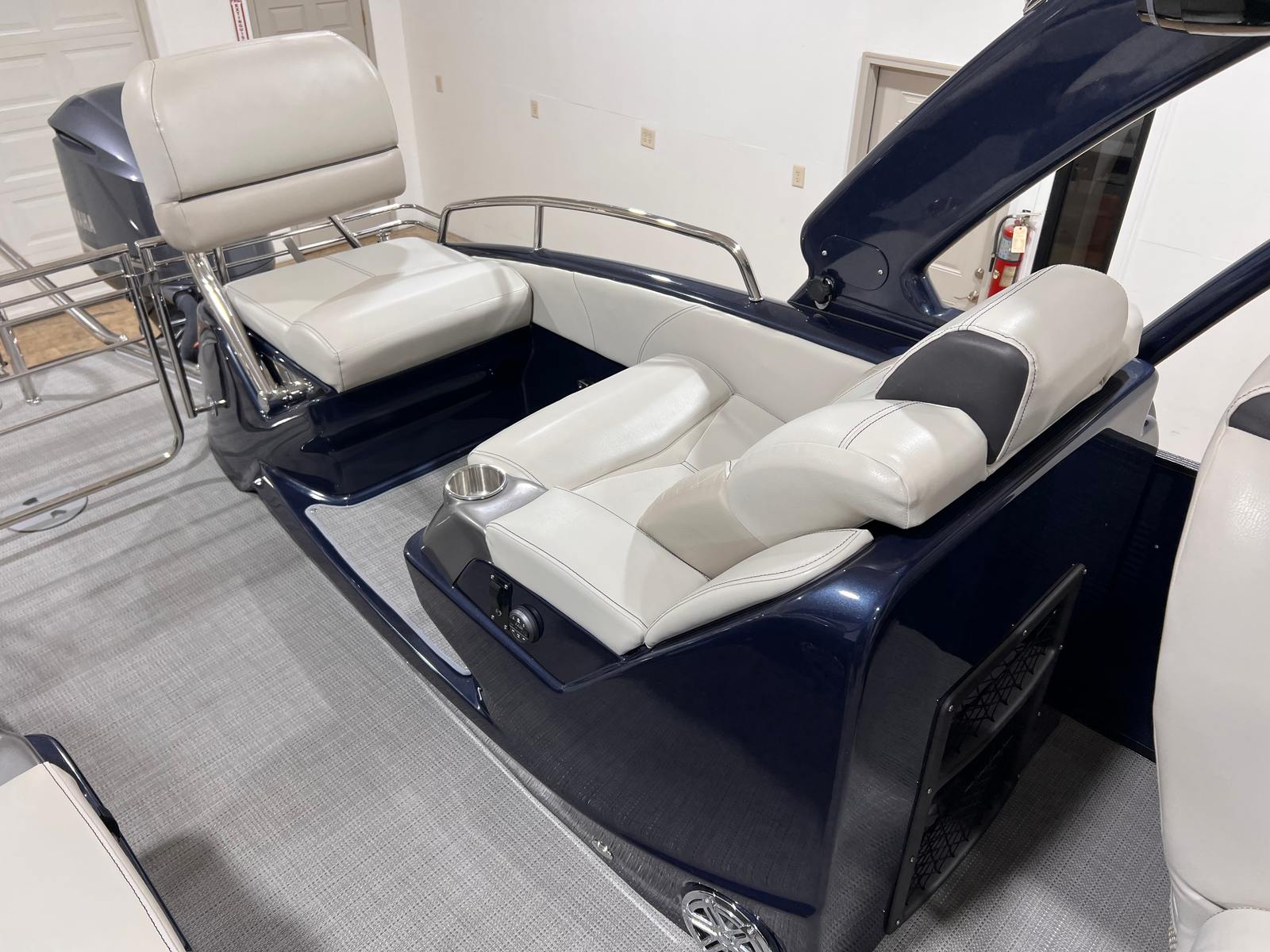 Owning the Manitou Legacy 270 SHP Dual pontoon boat opens up a world of fun and relaxation. The spacious deck is perfect for hosting family and friends, providing plenty of room for socializing, sunbathing, or enjoying a picnic on the water. The powerful engines make it easy to tow water toys, wakeboards, or tubes, ensuring endless entertainment for all ages. The pontoon’s stable platform is ideal for fishing, swimming, or simply lounging in comfort. With its luxurious design and high-performance capabilities, this Manitou boat for sale offers the perfect balance of excitement and leisure, making every outing a memorable event.