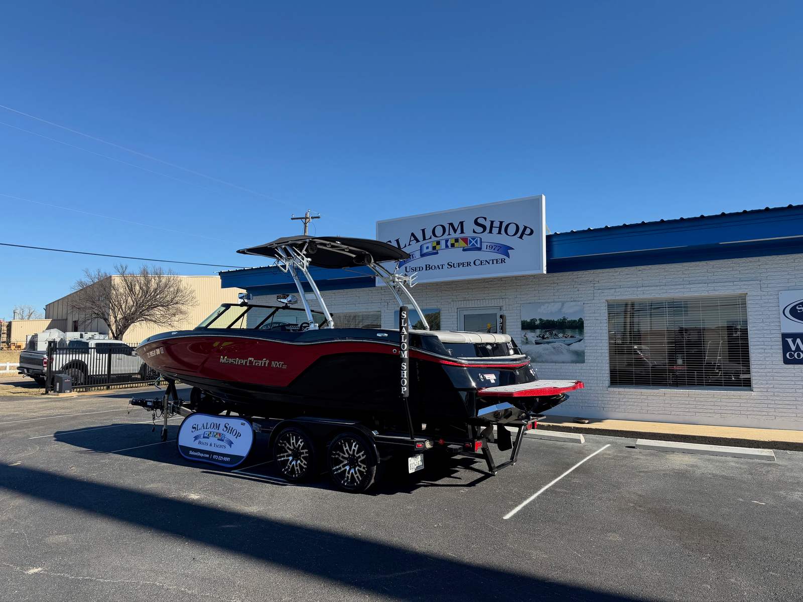 Now available for sale at our Used Boat Super Center in Lewisville, this well-kept 2017 MasterCraft NXT22 freshwater boat features a striking red metal flake and black gelcoat exterior paired with a white interior accented in grey. Powered by a reliable Ilmor 5000 MPI 5.7L engine producing 320 horsepower, this boat has only 131 hours and is built for both performance and comfort on the water.