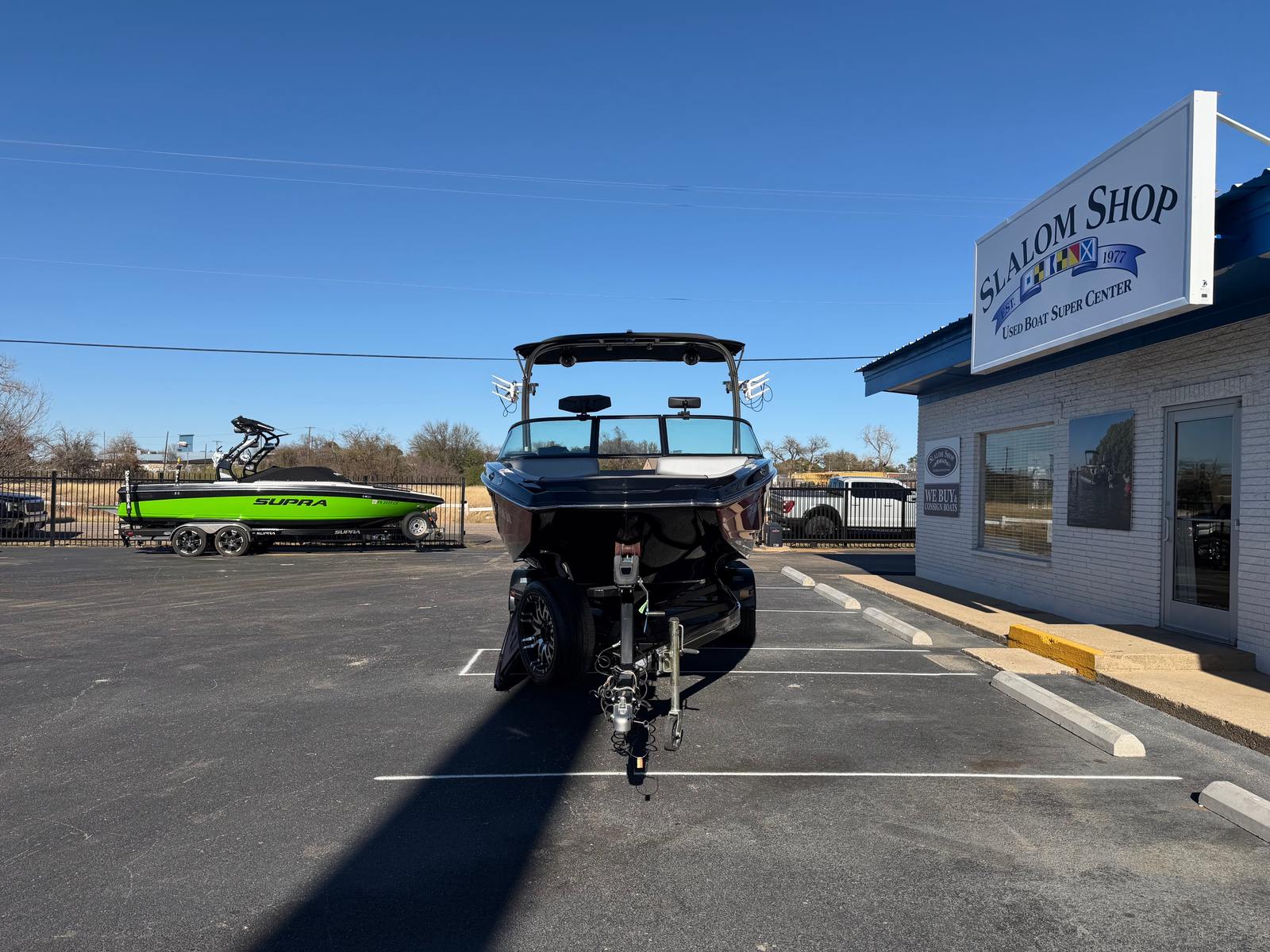 Equipped with the MasterCraft Surf System with center wakeplate and ballast system, this boat delivers excellent wakes and waves for wakeboarding and surfing, along with premium audio, practical features, and comfortable seating throughout.