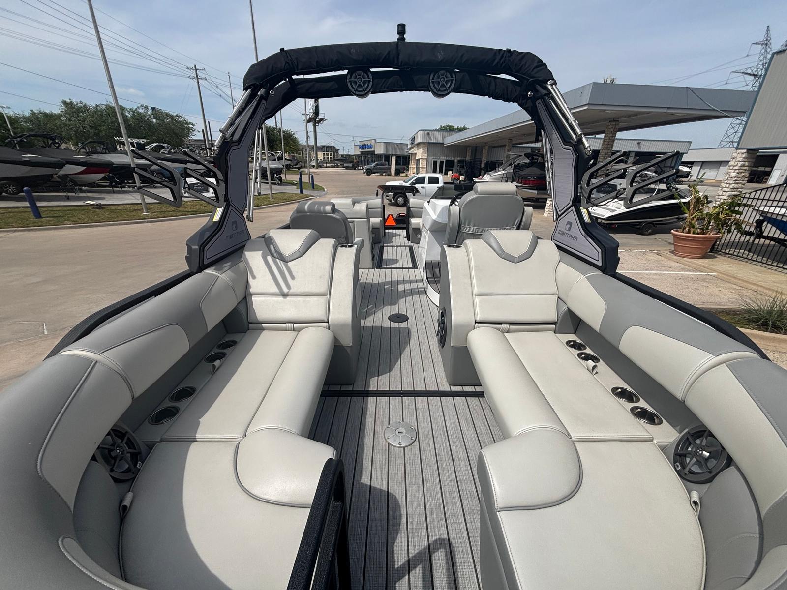 The 2023 Montara Surf Boss 2.0 is thoughtfully designed with both the driver and passengers in mind. Its spacious 27.07-foot layout provides plenty of room for family and friends, ensuring everyone has a comfortable spot to enjoy the journey. The ergonomic helm puts you in complete control, while the open deck layout encourages socializing and relaxation. The Surf Boss 2.0’s innovative design makes it easy to move around the boat, whether you are preparing for water sports or simply soaking up the sun.This Montara boat for sale is built with quality materials and attention to detail, ensuring durability and long-lasting enjoyment. The stylish exterior is matched by a comfortable and inviting interior, making every outing a pleasure. The boat’s used condition means it has already proven its reliability, giving you peace of mind as you embark on new adventures.