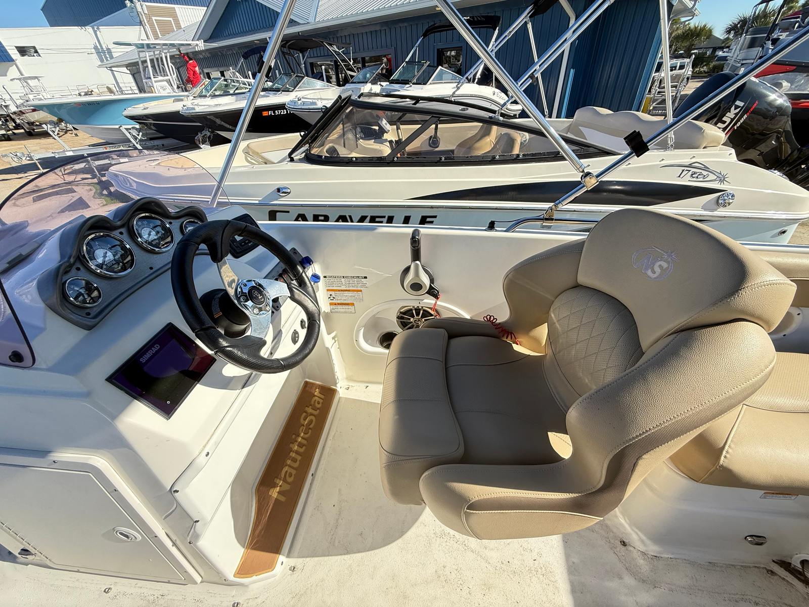 The Nauticstar 203 SC Deckboat is designed with your comfort and convenience in mind. Its spacious deck layout provides plenty of room for family and friends to relax, socialize, and soak up the sun. The open bow seating area is perfect for lounging or enjoying a picnic, while the wraparound cockpit seating ensures everyone has a comfortable spot. Thoughtful storage solutions are integrated throughout the boat, making it easy to stow away gear, snacks, and water toys without cluttering the deck.Special features of the Nauticstar 203 SC include a user-friendly helm station with intuitive controls, allowing the captain to navigate with confidence and ease. The boat’s durable construction and quality materials ensure long-lasting enjoyment, even with regular use. The deckboat’s design maximizes usable space, creating a welcoming environment for gatherings, celebrations, or quiet moments on the water.