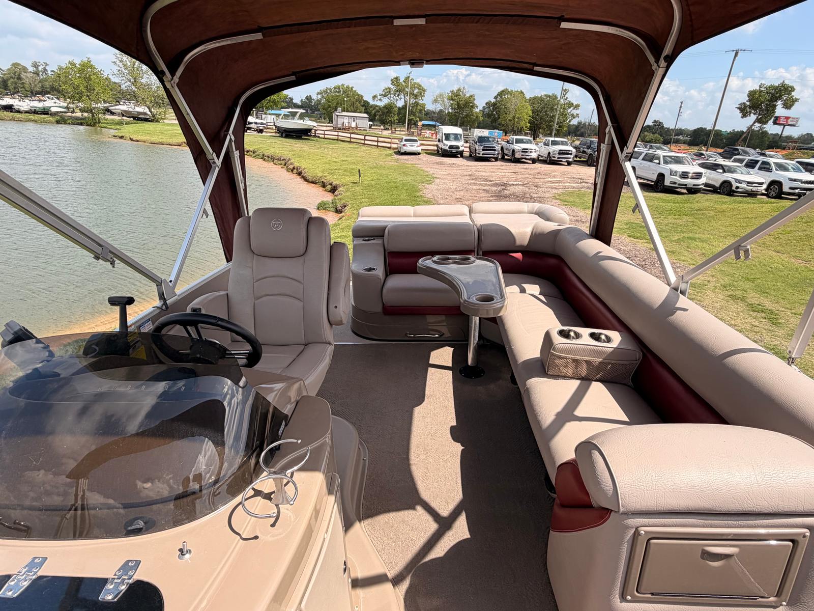 The Premier 235 Elite is not just about luxury and fun—it’s also incredibly practical. The pontoon design makes docking and maneuvering a breeze, even for those new to boating. The spacious deck provides ample storage for gear, water toys, and picnic supplies, ensuring you’re always prepared for a day on the water. The efficient 300-horsepower engine offers a great balance of power and fuel economy, so you can spend more time enjoying the lake and less time at the pump. Whether you’re planning a quick afternoon escape or a full day of adventure, this pontoon boat for sale is equipped to handle it all with ease.