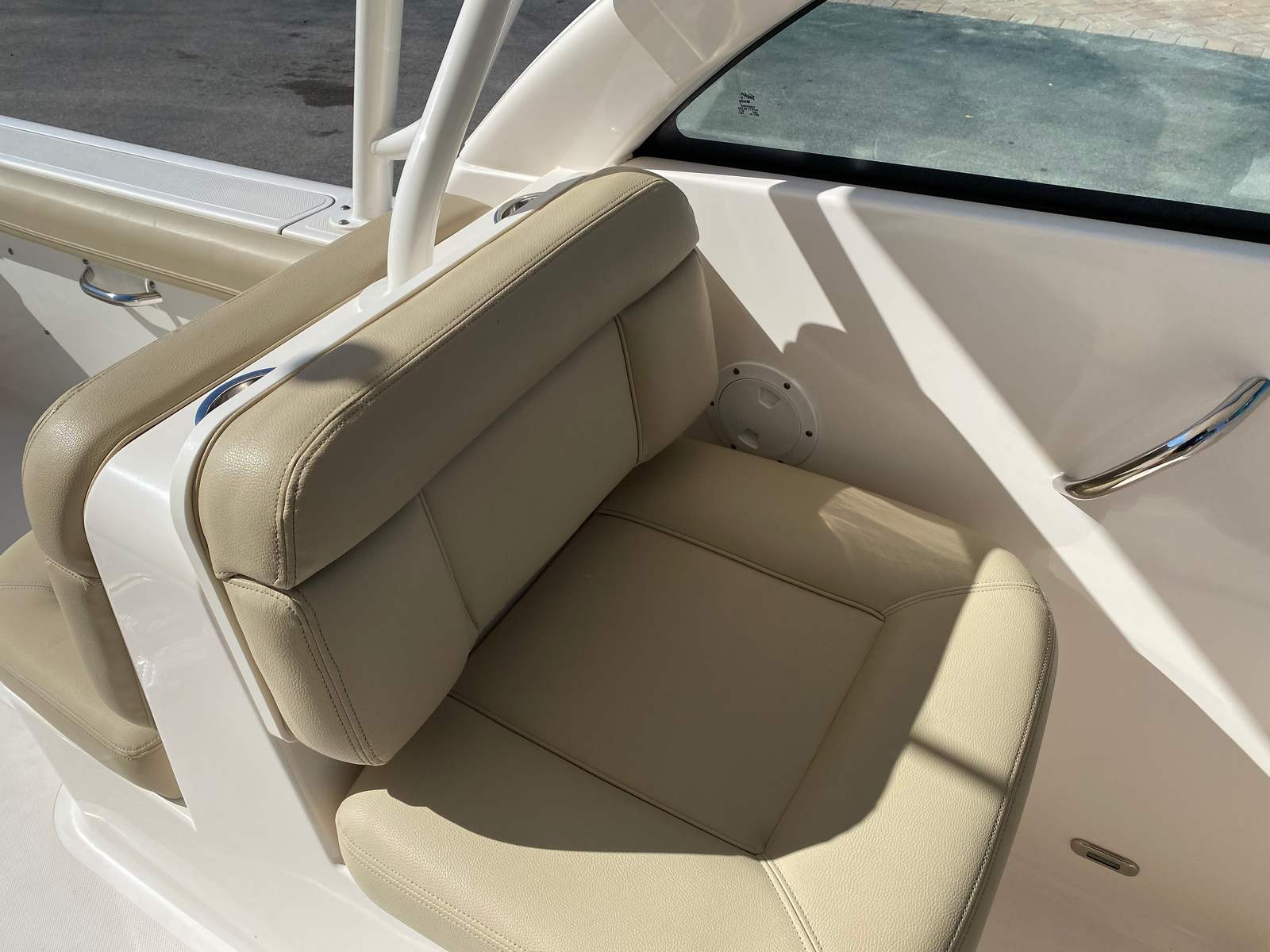 Powered by twin engines delivering a combined 400 horsepower, the Pursuit DC 265 offers impressive performance on the water. With 700 engine hours, these engines have proven their reliability and are ready for many more adventures. The dual engine setup provides excellent acceleration, responsive handling, and the power needed to tackle a variety of water conditions. Whether you are cruising along the coastline, heading out for a day of fishing, or enjoying water sports with family and friends, this dual console boat for sale delivers a smooth and exhilarating ride.