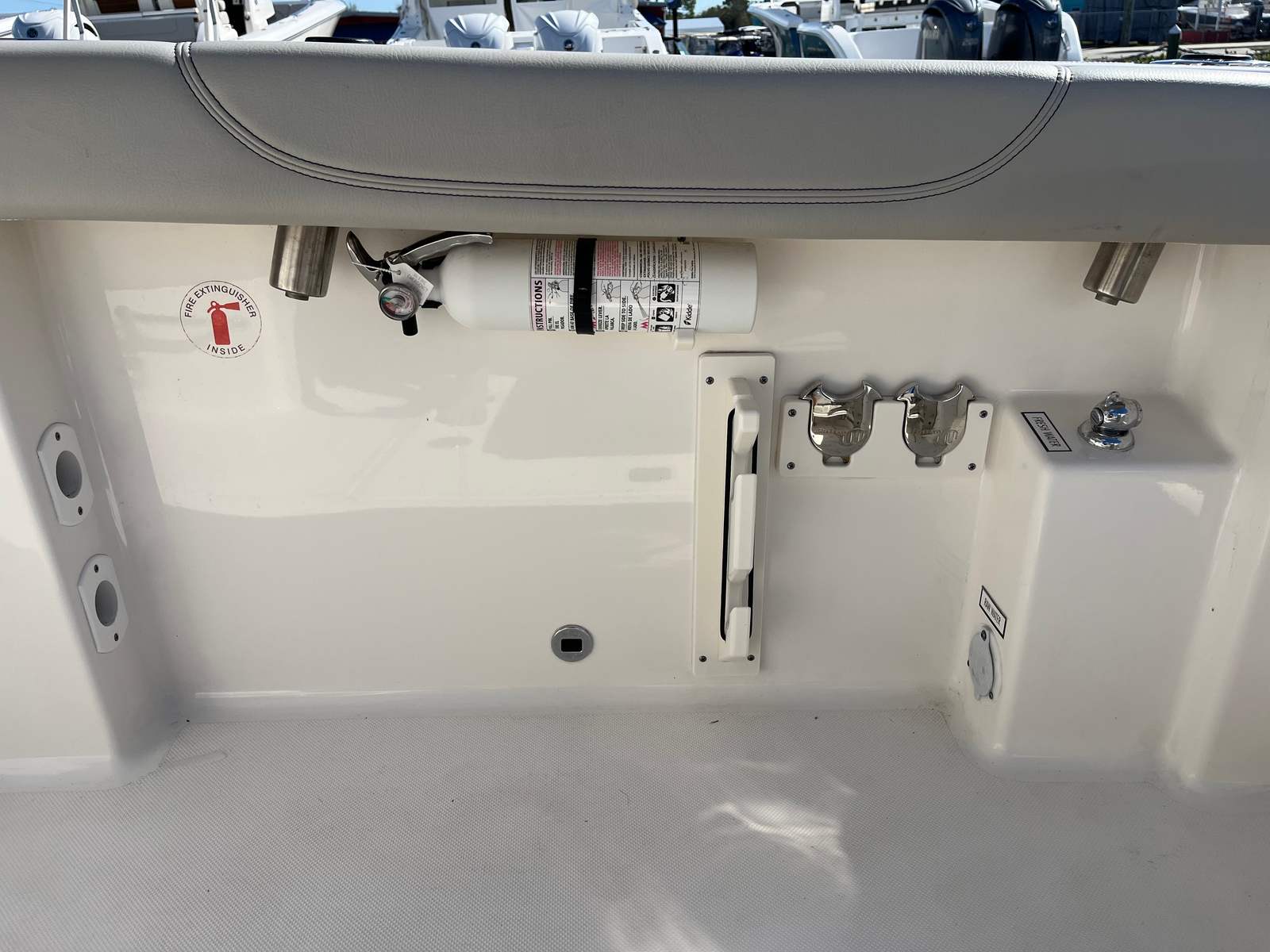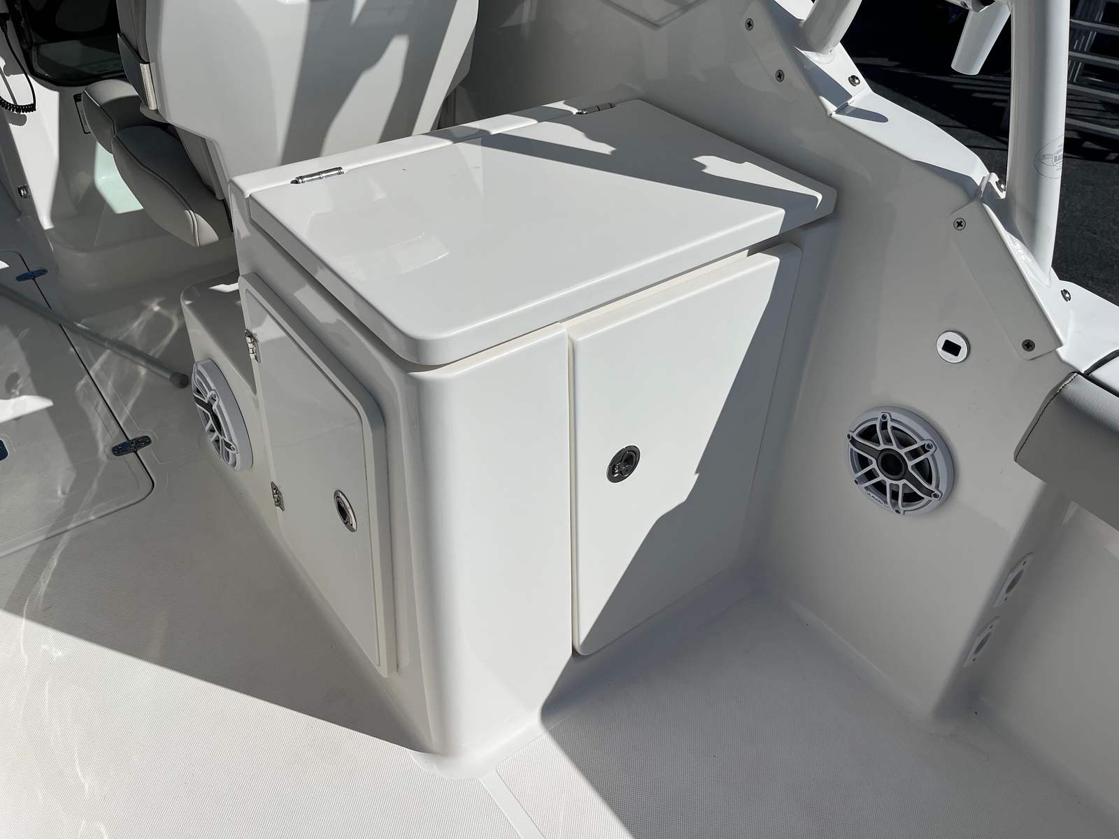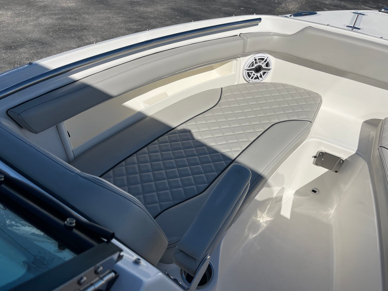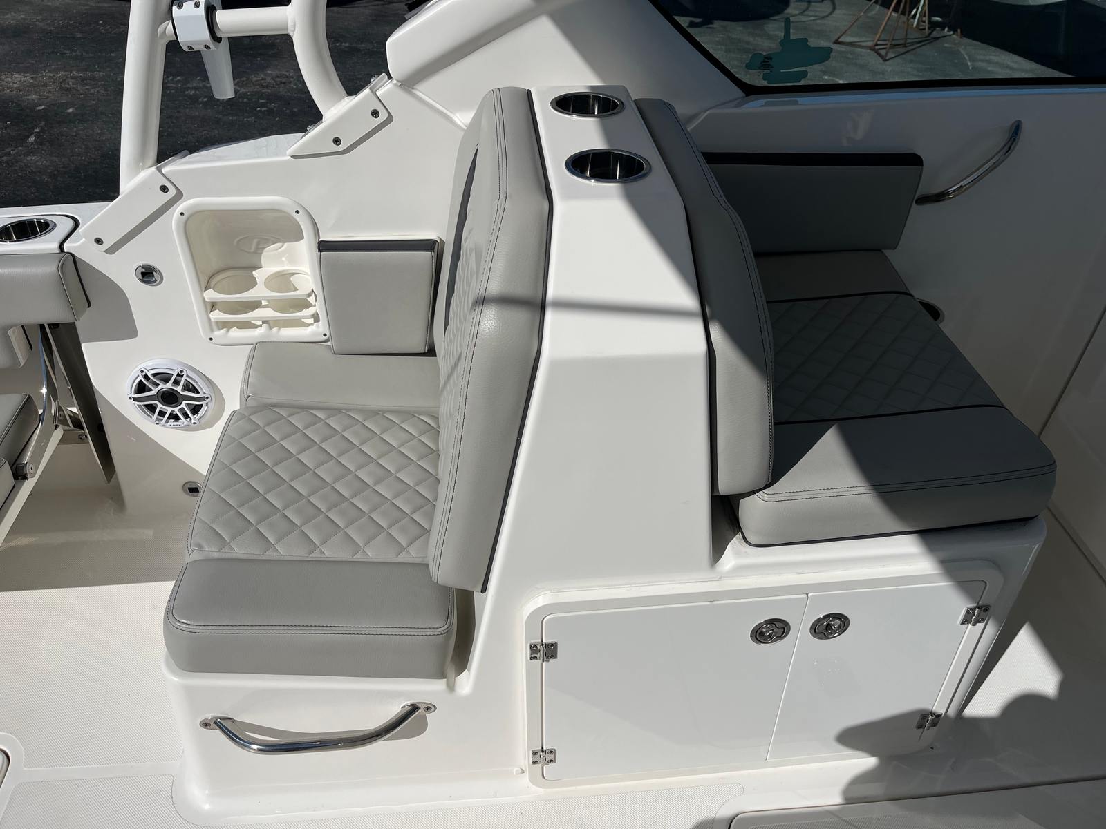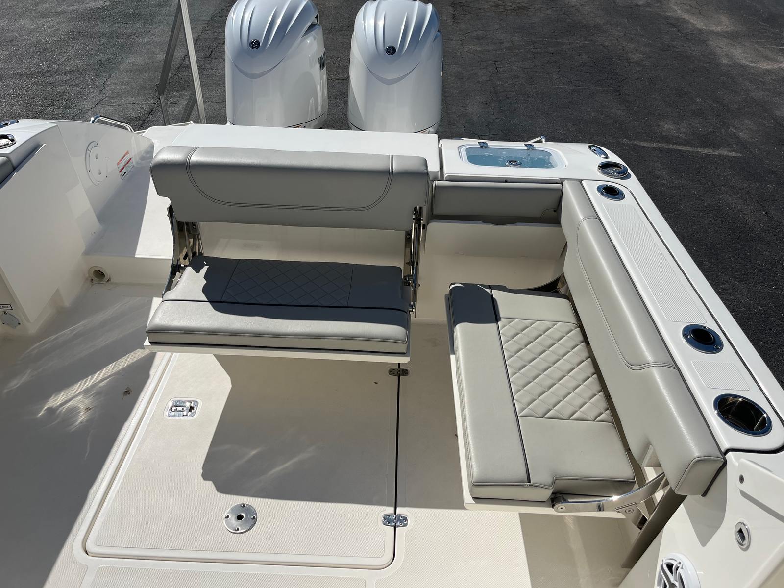 From the stainless hardware to the plush upholstery and premium electronics, every inch reflects Pursuit’s commitment to quality. Storage is abundant and intelligently placed, making day trips or long weekends easy and organized.