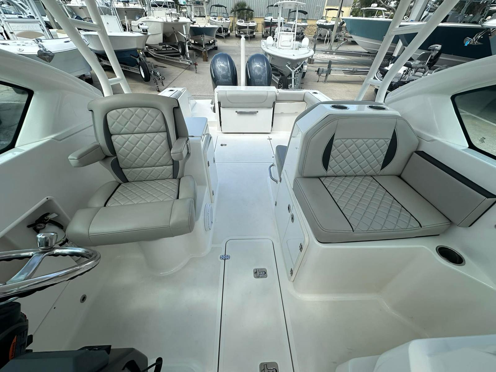 The Pursuit DC 266 is designed with versatility and comfort in mind, making it a standout option among Dual Console boats for sale. Its spacious layout includes ample seating in both the bow and cockpit areas, allowing guests to spread out and enjoy the ride. The dual console design offers protection from the elements, with a sturdy windshield and well-placed handrails for added safety. Storage is abundant throughout the boat, with dedicated compartments for gear, life jackets, and other essentials, keeping the deck clutter-free and organized.The helm is thoughtfully arranged, providing easy access to controls and gauges, ensuring a stress-free boating experience. The Pursuit DC 266 also features a convenient walk-through windshield, allowing seamless movement between the bow and cockpit areas. This design not only enhances safety but also encourages social interaction, making it ideal for entertaining guests or spending quality time with family.