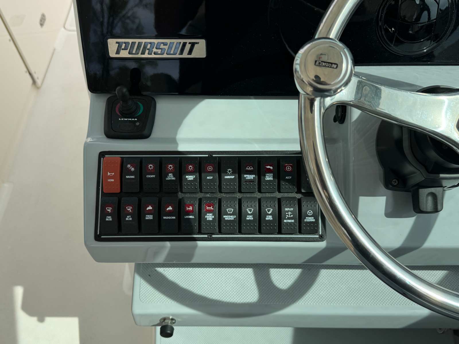 Powered by twin engines delivering a combined 600 horsepower, the Pursuit DC 326 offers exhilarating performance and smooth handling. The dual engines provide impressive acceleration, responsive control, and the confidence to tackle a variety of water conditions. With only 128 engine hours, these engines are primed for many more seasons of enjoyment. Whether you are cruising along the coastline, heading to your favorite fishing spot, or enjoying water sports, this dual console boat for sale delivers the power and reliability you need for every journey.