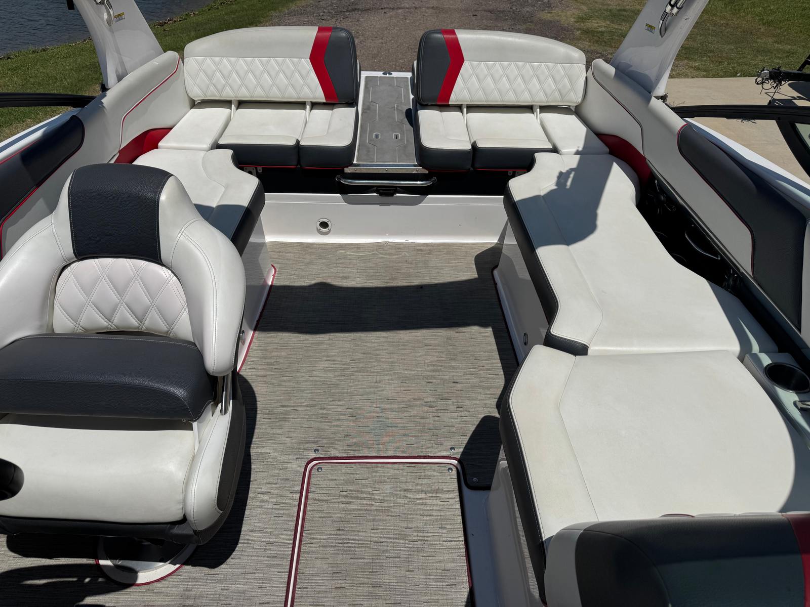 The 2018 Regal 2300 RX Surf is a 23-foot Bowrider designed for those who crave excitement and sophistication on the water. With its sleek lines, sporty profile, and innovative surf technology, this used Regal boat for sale is perfect for both seasoned boaters and newcomers alike. The 2300 RX Surf is renowned for its spacious layout, making it ideal for entertaining friends, hosting family outings, or simply enjoying a peaceful day on the lake. Its 23-foot length strikes the perfect balance between maneuverability and ample space, ensuring you have plenty of room to relax without sacrificing ease of handling.