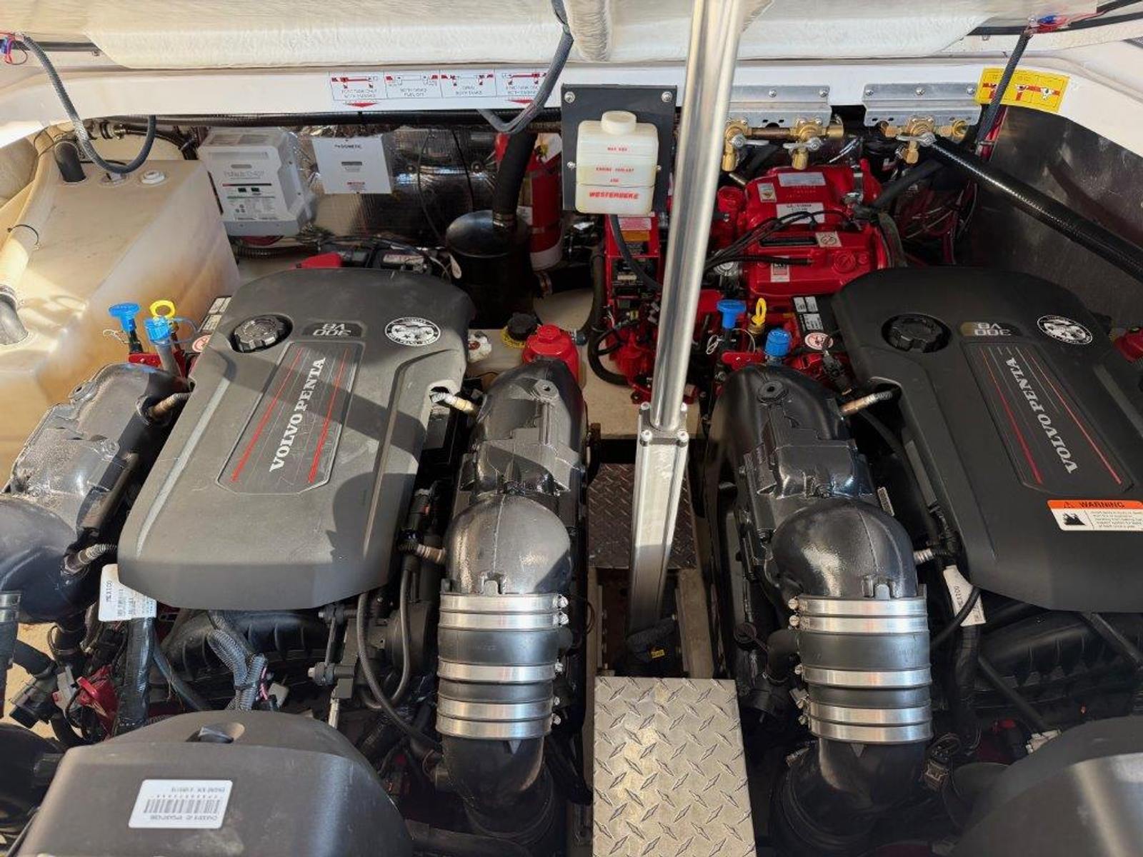Freshwater and meticulously maintained, don’t miss your opportunity to own this beautiful 2-owner 2019 Regal 35 Sport Coupe. She’s brand new to the sales dock and ready for immediate delivery. The current owner already has his next boat picked out and is ready to make a deal. Where sport meets luxury, the 35 Sport Coupe is fast, agile, and effortless to dock with Volvo’s EVC Joystick. Powered by twin Volvo V8 300 DP CAT engines (130 hours) and a Westerbeke generator (75 hours), she delivers smooth cruising with a 225-mile range.