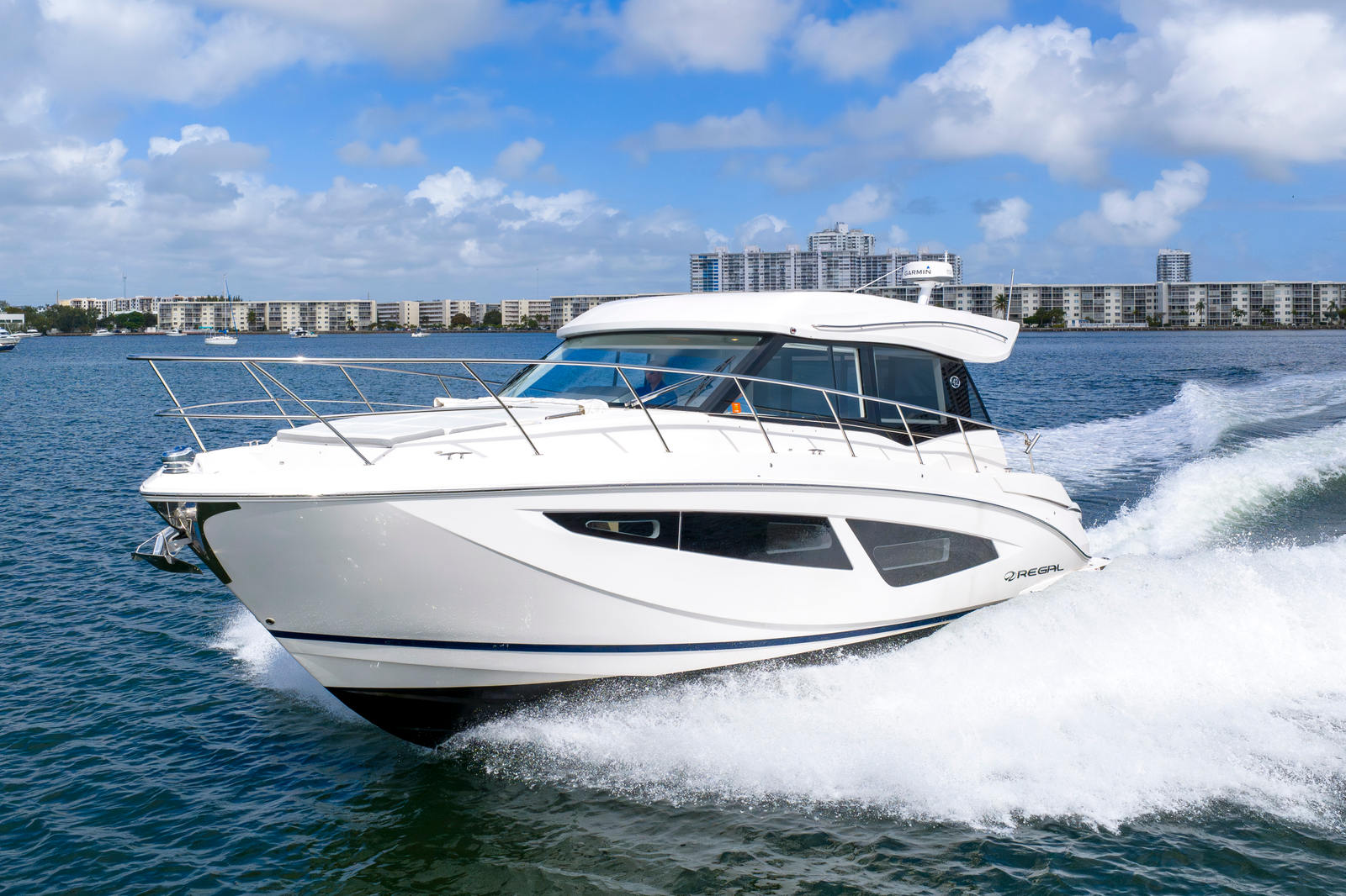2024 Regal 42 XO – Low Hour | Seakeeper | Triple Yamaha 450s | DockMate | Humphrey Auto Trim Tabs