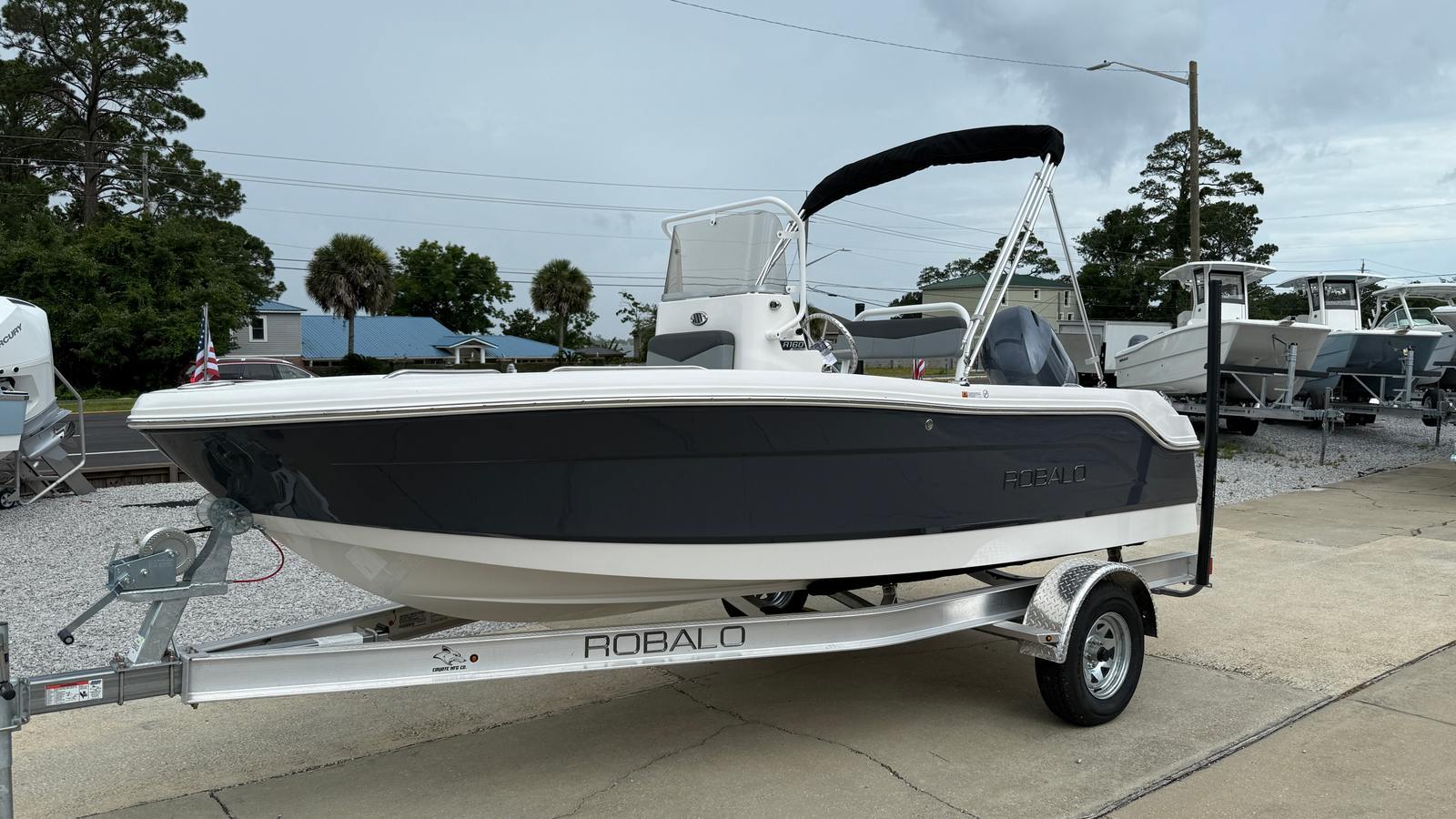 In summary, the 2025 Robalo 160 CC is a new center console boat that offers exceptional value, performance, and versatility. With its powerful Yamaha F90LB engine, stylish Shark Gray hull, comfortable Shadow interior, and premium features like the Bimini top and SeaStar Safe-T Quick Connect Tilt Steering, this Robalo boat for sale is ready to elevate your boating adventures. The included standard trailer and 5-year premium level limited component warranty add even more peace of mind and convenience.If you are searching for a center console boat that combines style, reliability, and fun, the Robalo 160 CC is an outstanding choice. Don’t miss the opportunity to make unforgettable memories on the water—contact your local dealer today to learn more about this incredible boat and schedule a viewing.