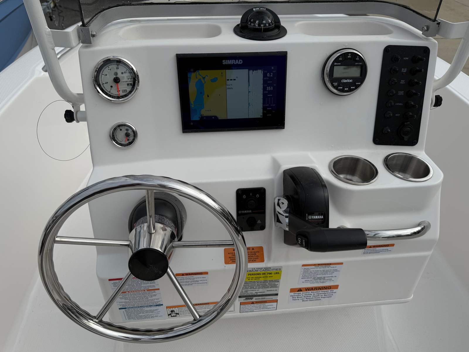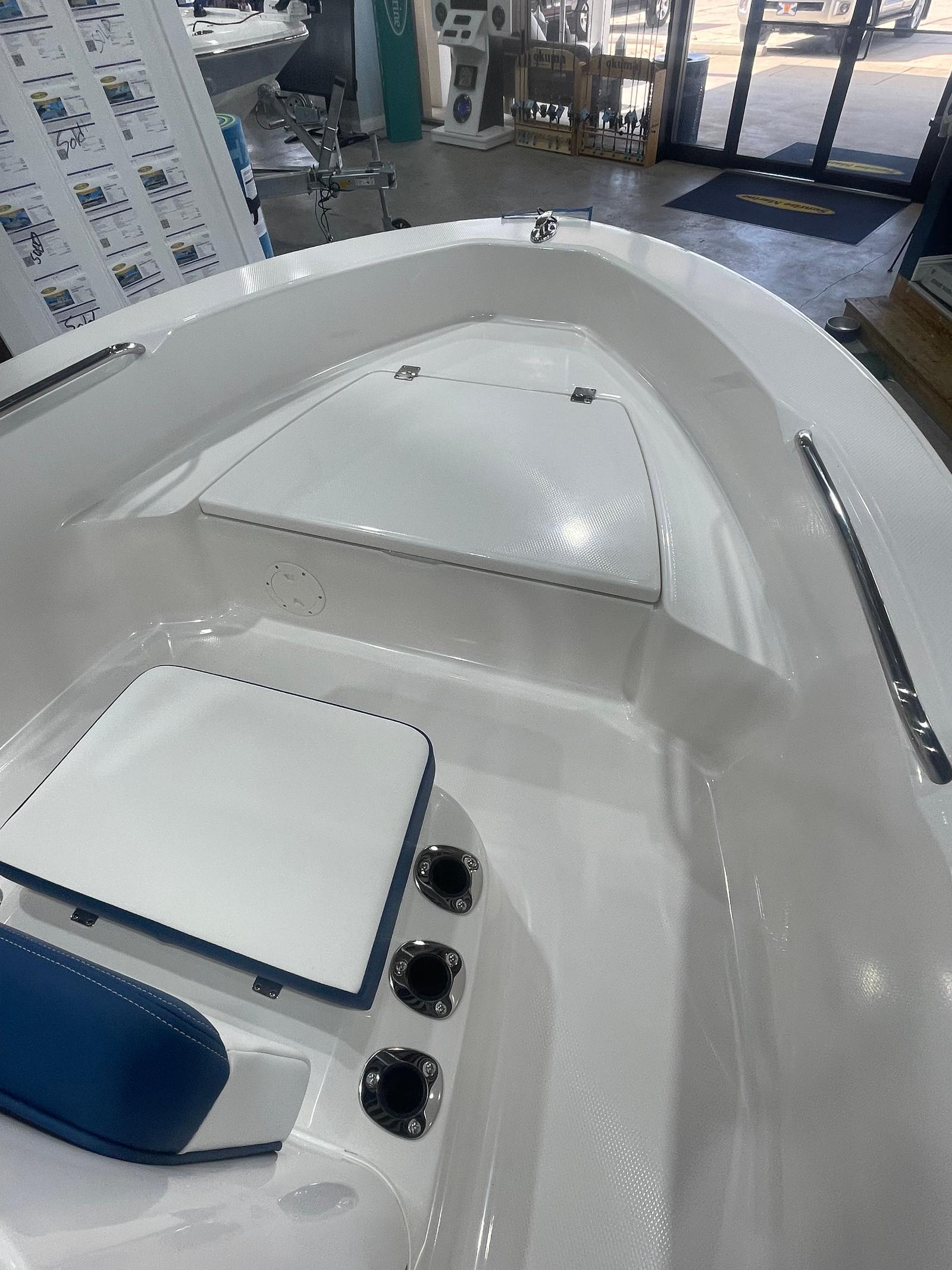 The 2025 Robalo 160 CC is packed with an array of special features that enhance both its functionality and aesthetic appeal. The standard aluminum prop not only contributes to the boats efficiency but also ensures longevity and minimal maintenance. Inside the cockpit, the blue interior offers a refreshing and comfortable environment, while the optional Biscayne Blue canvas color adds a touch of vibrant style if equipped. The SeaStar Safe-T Quick Connect Tilt Steering system provides effortless maneuverability, allowing you to navigate tight spots with confidence. Additionally, the fold-down console windshield and grab rail add versatility and safety, making it easy to adapt to changing weather conditions and ensuring secure handling at all times.