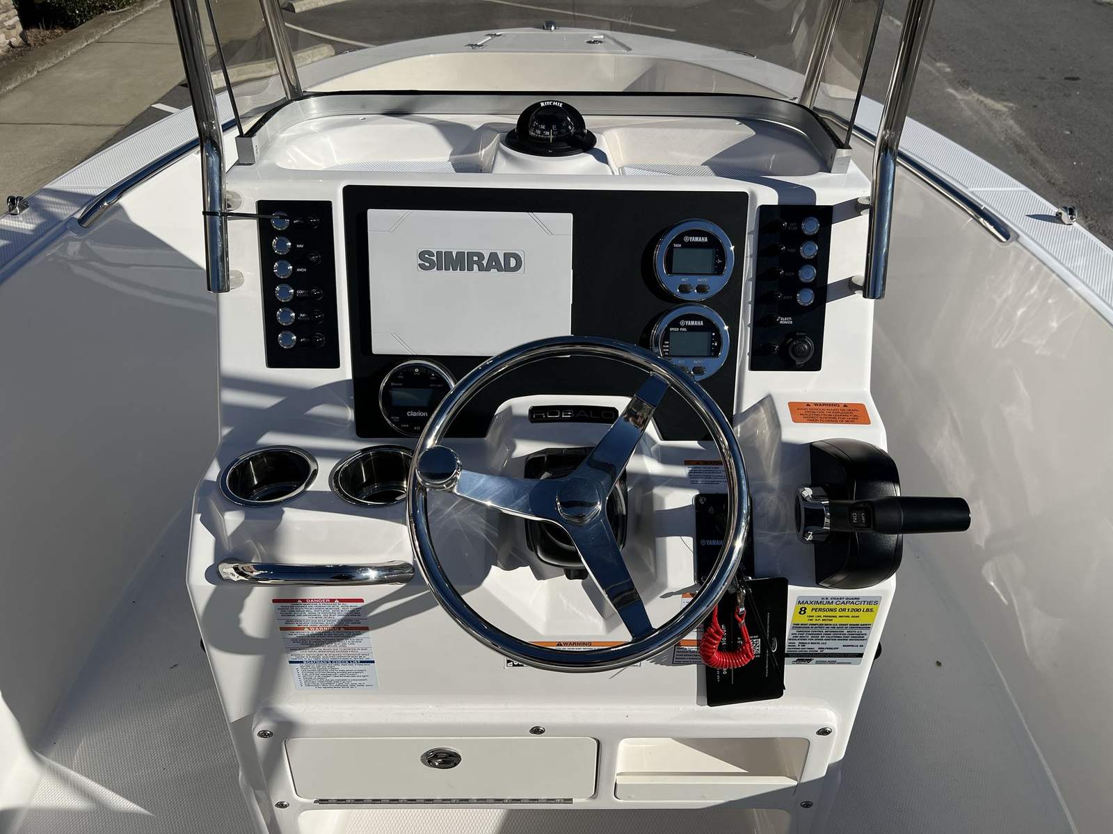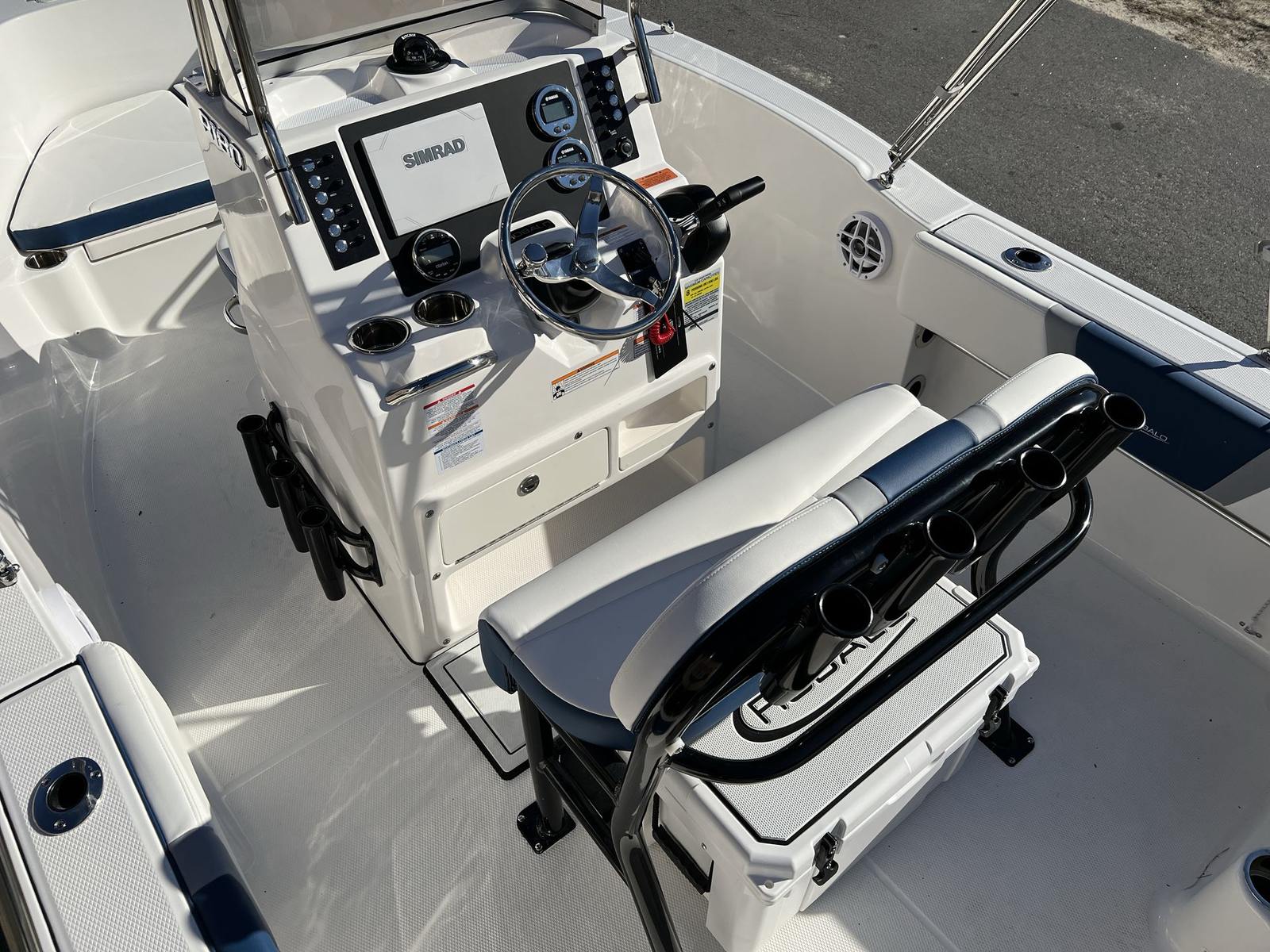 The 2025 Robalo 180 CC Center Console is a standout choice for anyone seeking a new Center Console boat for sale that combines style, performance, and versatility. With its powerful Yamaha F150XC engine, integrated hydraulic steering, striking Biscayne Blue hull, and a host of premium features—including a Bimini top, Simrad GO9 Touch Multifunction Chartplotter/Fishfinder, Seadek helm mat, and more—this Robalo boat for sale is ready to elevate your boating adventures. Experience the perfect blend of comfort, convenience, and excitement on the water. Don’t miss your chance to own this exceptional vessel—contact your local dealer today to learn more and start your journey with the Robalo 180 CC.